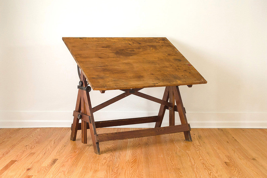 This table is sturdy and in overall excellent condition besides the age-related wear. It would make a great standing or seated desk and because of its height and size it could also be used as a really cool kitchen island or bar table.