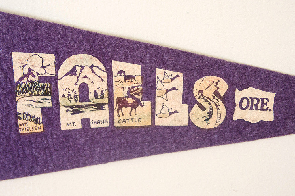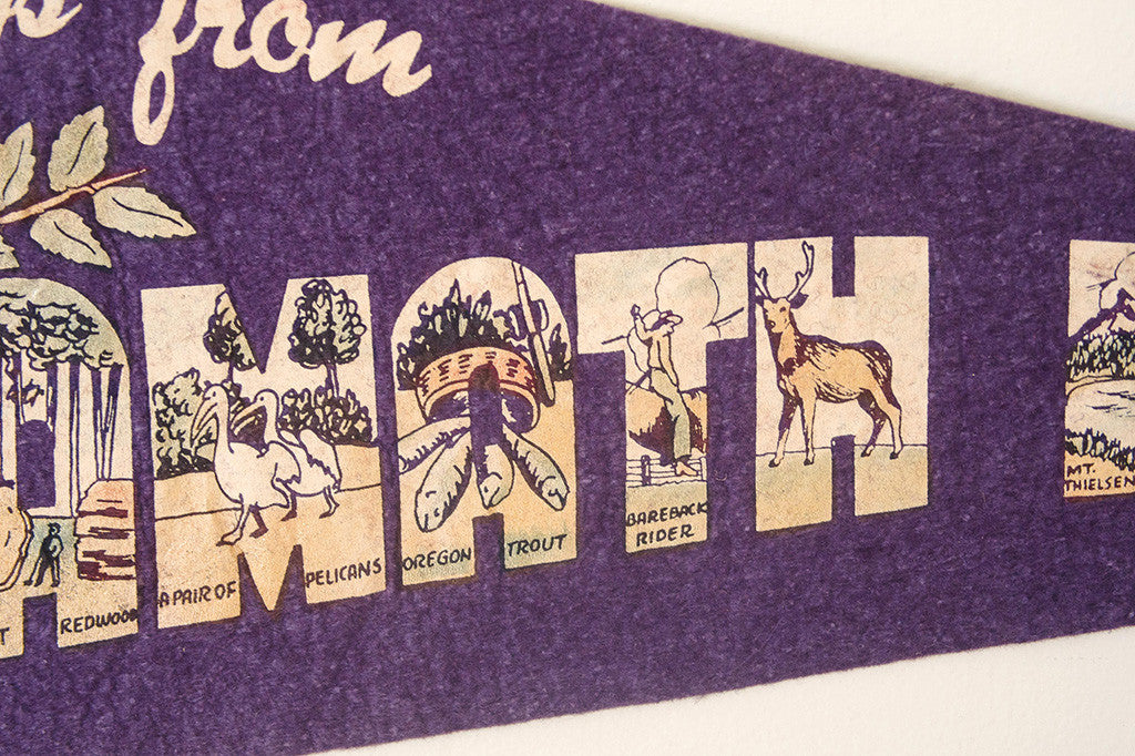 This vintage Klamath Oregon souvenir pennant flag is most likely from the 1940s-1950s. It has cool vintage fonts and the colors are still vibrant. This pennant is in excellent shape and ready to hang. Please see pictures for detailed condition of this piece.