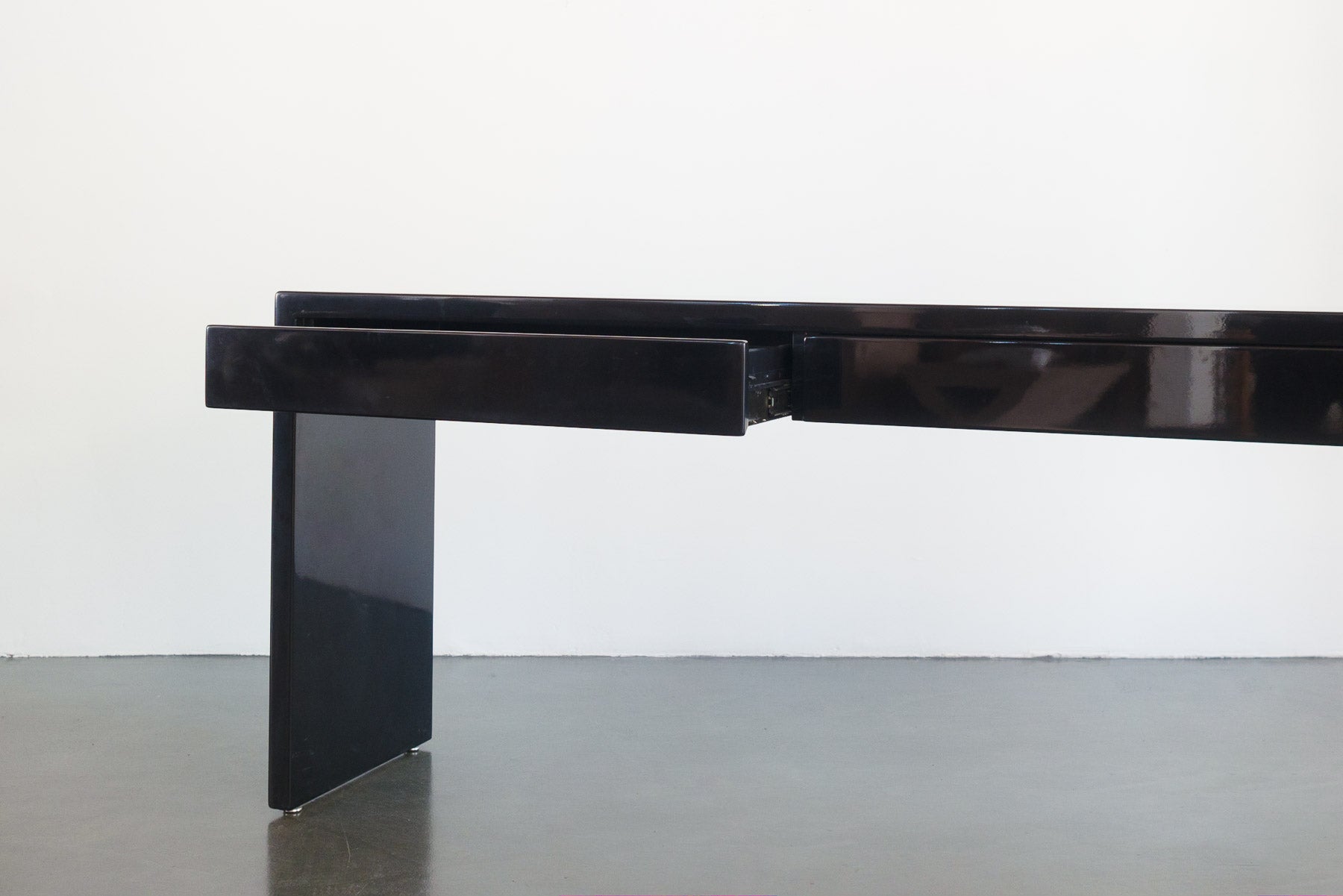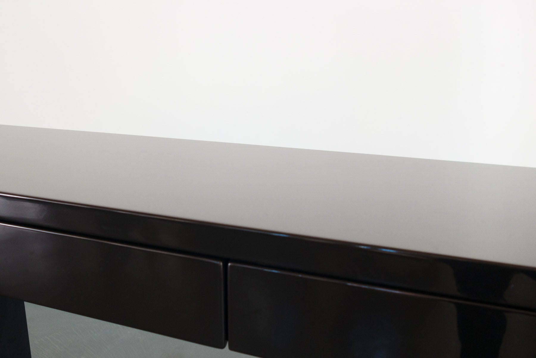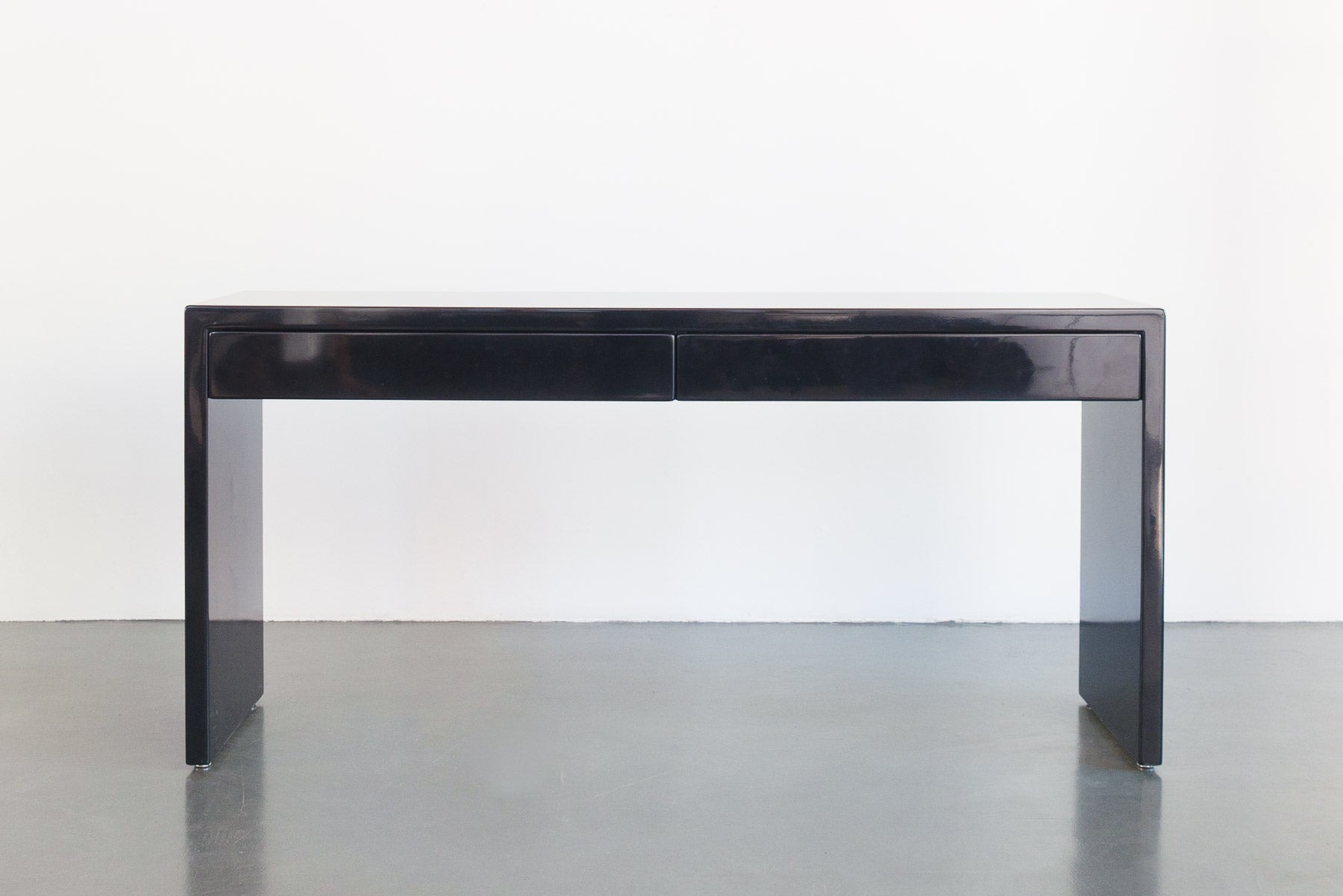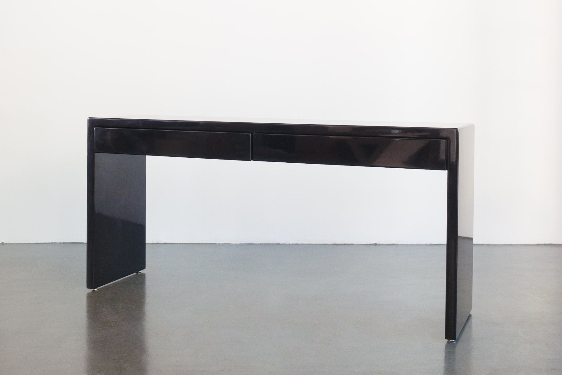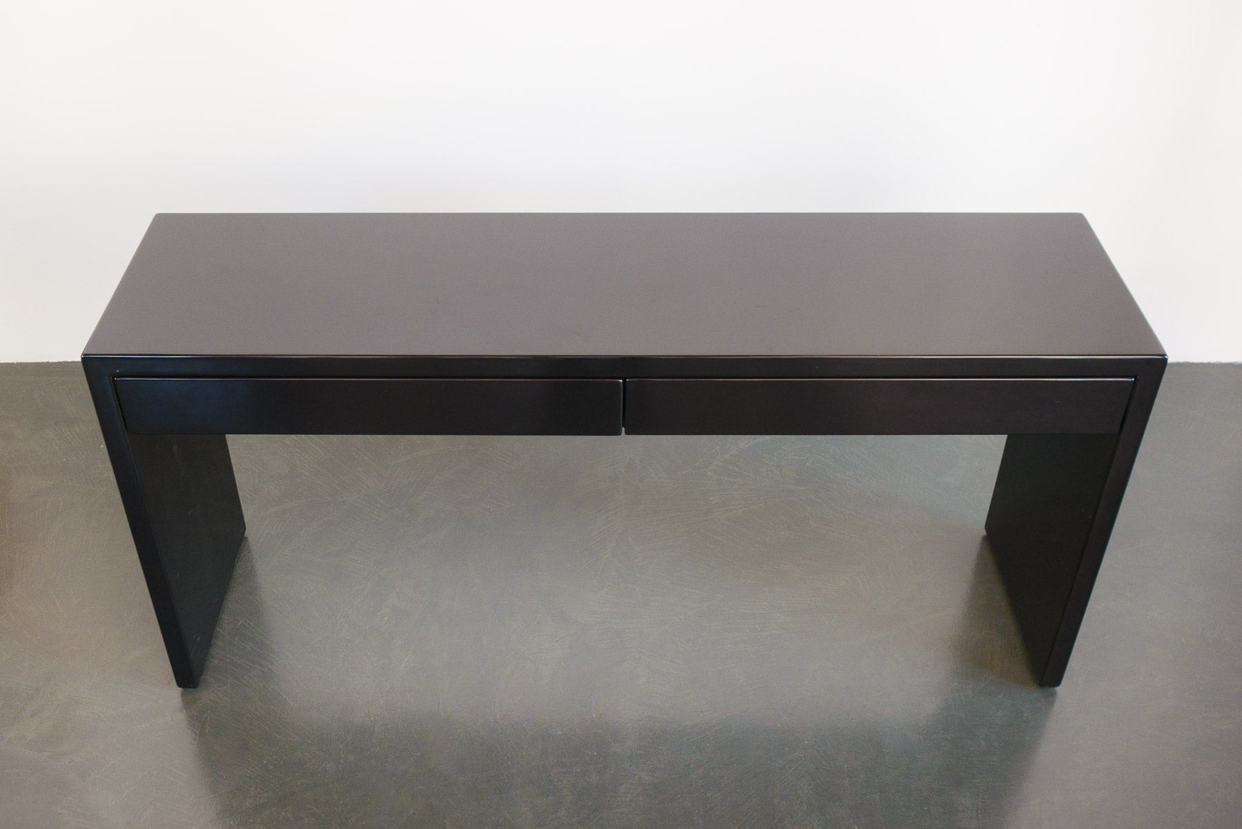 style: custom built, modern, minimalist, 2 drawer, console, sofa table, displaymaterial: wood, lacquer (black)age: vintage, 1990scondition: good, age related wear - see pictures