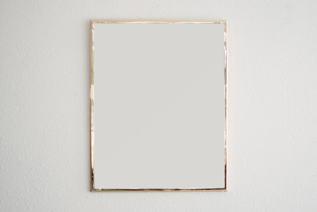 style: Mid Century, mirror, wall mount, French cleatmaterial: brass, glassage: vintage condition: good, age related wear - see pictures