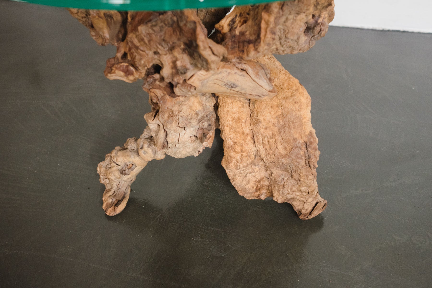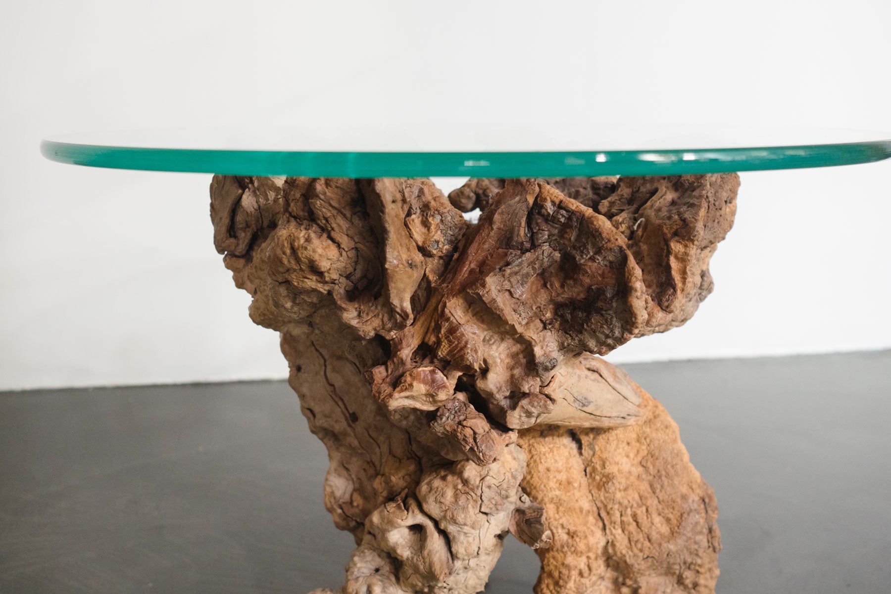 style: live edge, burl wood, side table, end tablematerial: wood, glassage: vintage, Mid Centurycondition: good, age related wear - see pictures