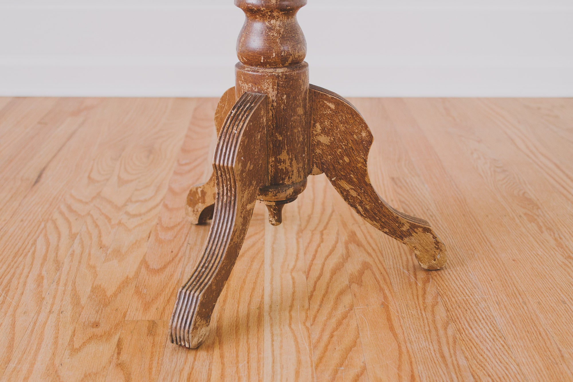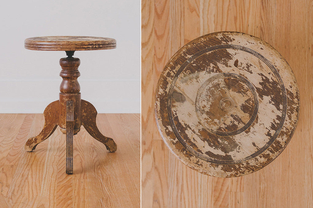 This vintage piano stool was manufactured by Lyon and Healy Harp. It has a distressed, solid wood base and seat, and is adjustable in height. It would work well at a drafting table or a kitchen island and could also be used as a plant stand or side table. It has had some professional work done to it. Please see pictures for detailed condition.