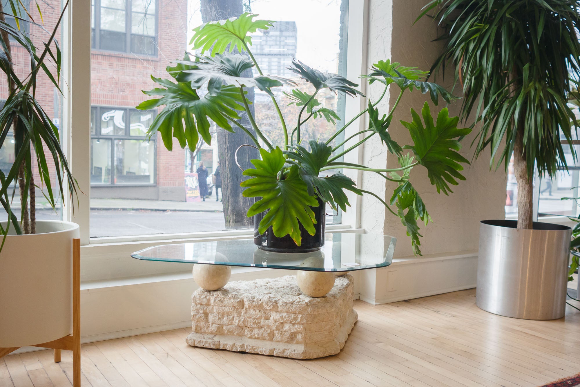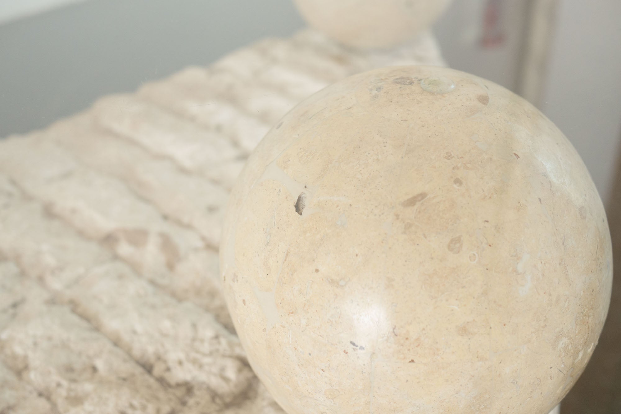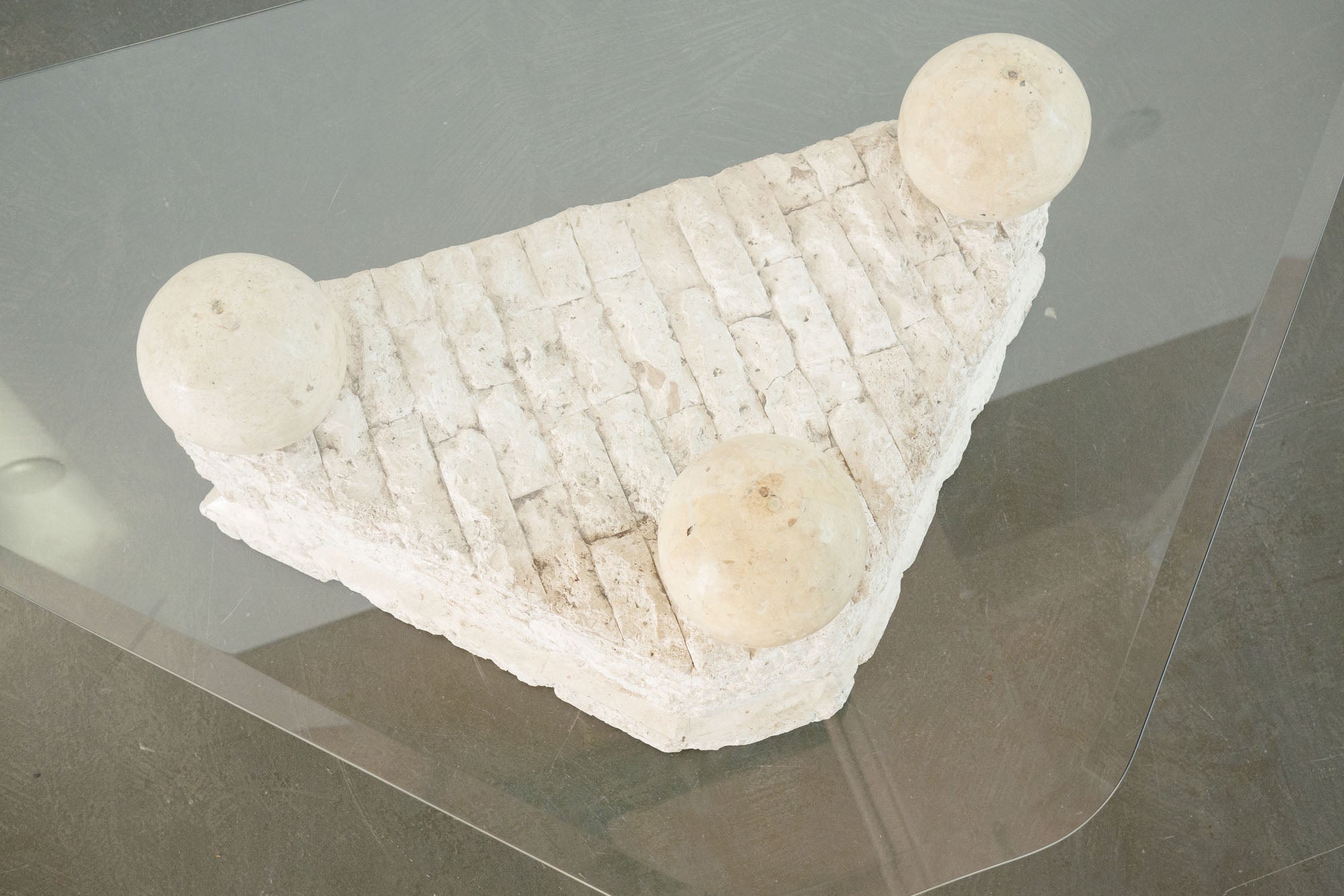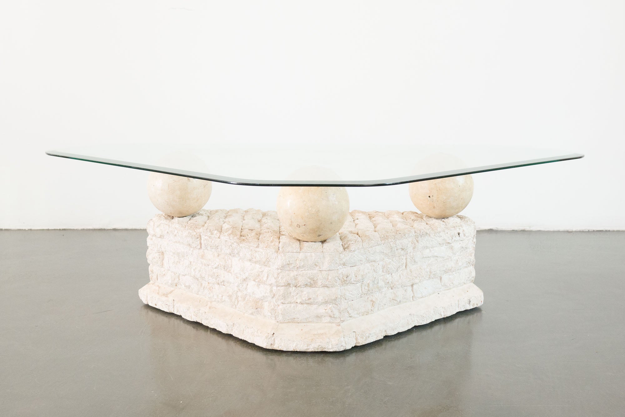 style: modern, display, end table, coffee table material: stone (mactan and pastor), glass brand: Magnussen Ponte age: vintage condition: good, age related wear - see pictures sku: hs-459