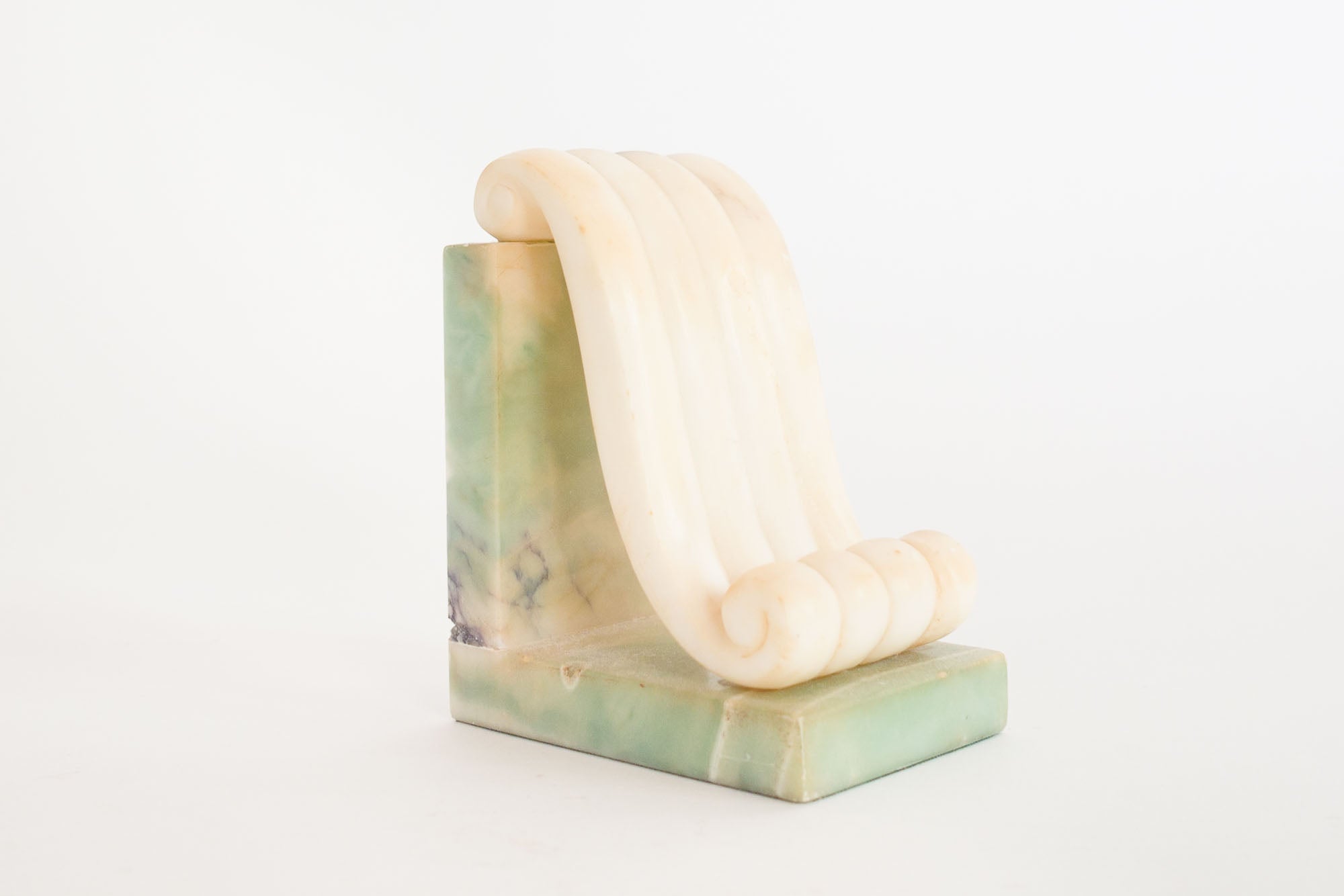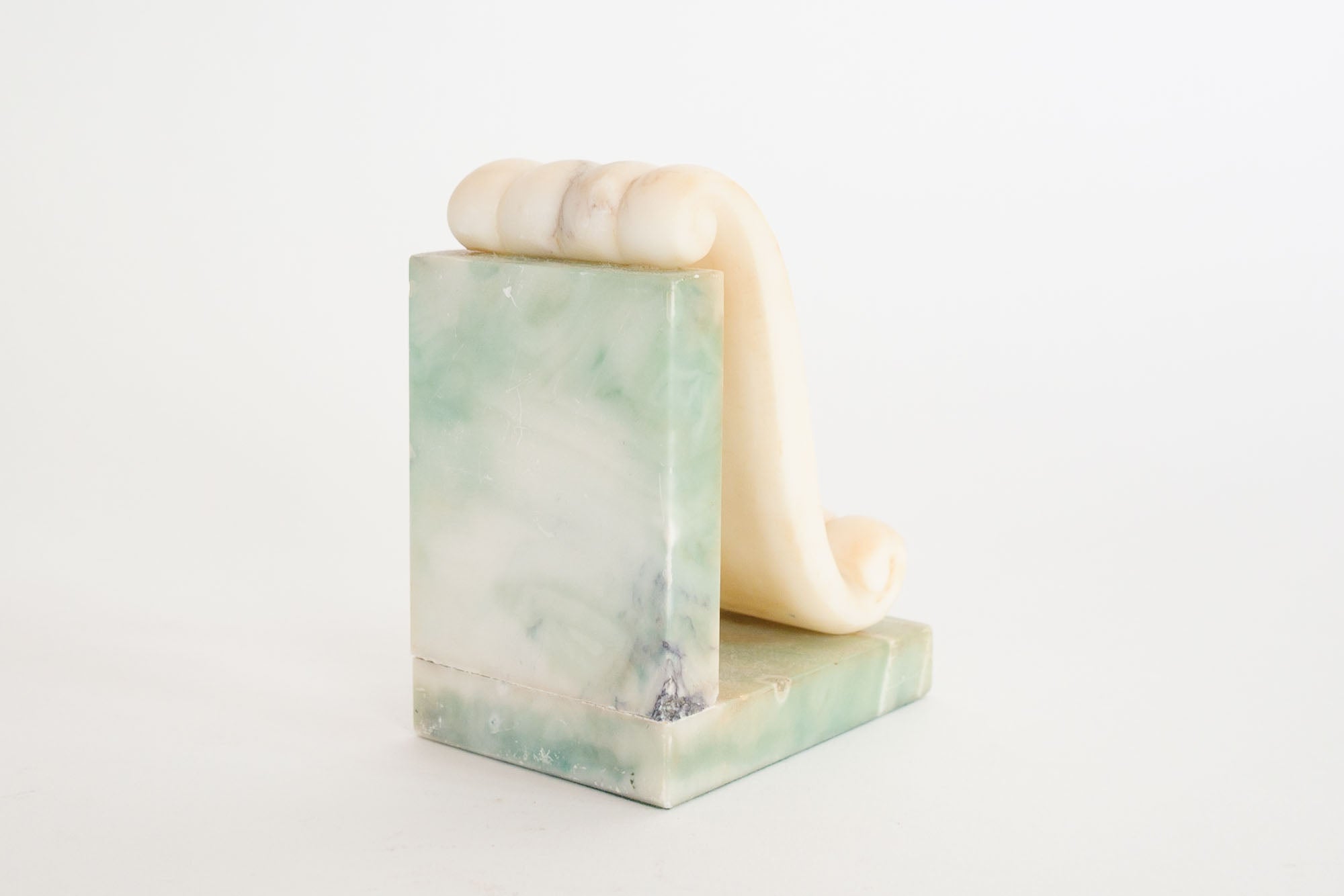 style: single, stone, bookendmaterial: alabaster (green, cream)age: vintagecondition: good, age related wear - see picturessku: sm-620