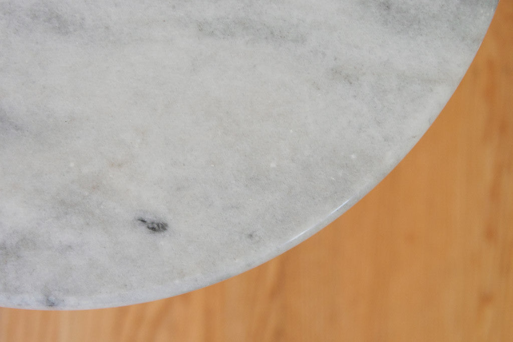 This vintage Hollywood Regency style side table has a brass base and solid marble top. It would be perfect as a side table and could also be used as a plant stand or nightstand. It's in good shape with light age related wear. Please see pictures for detailed condition.