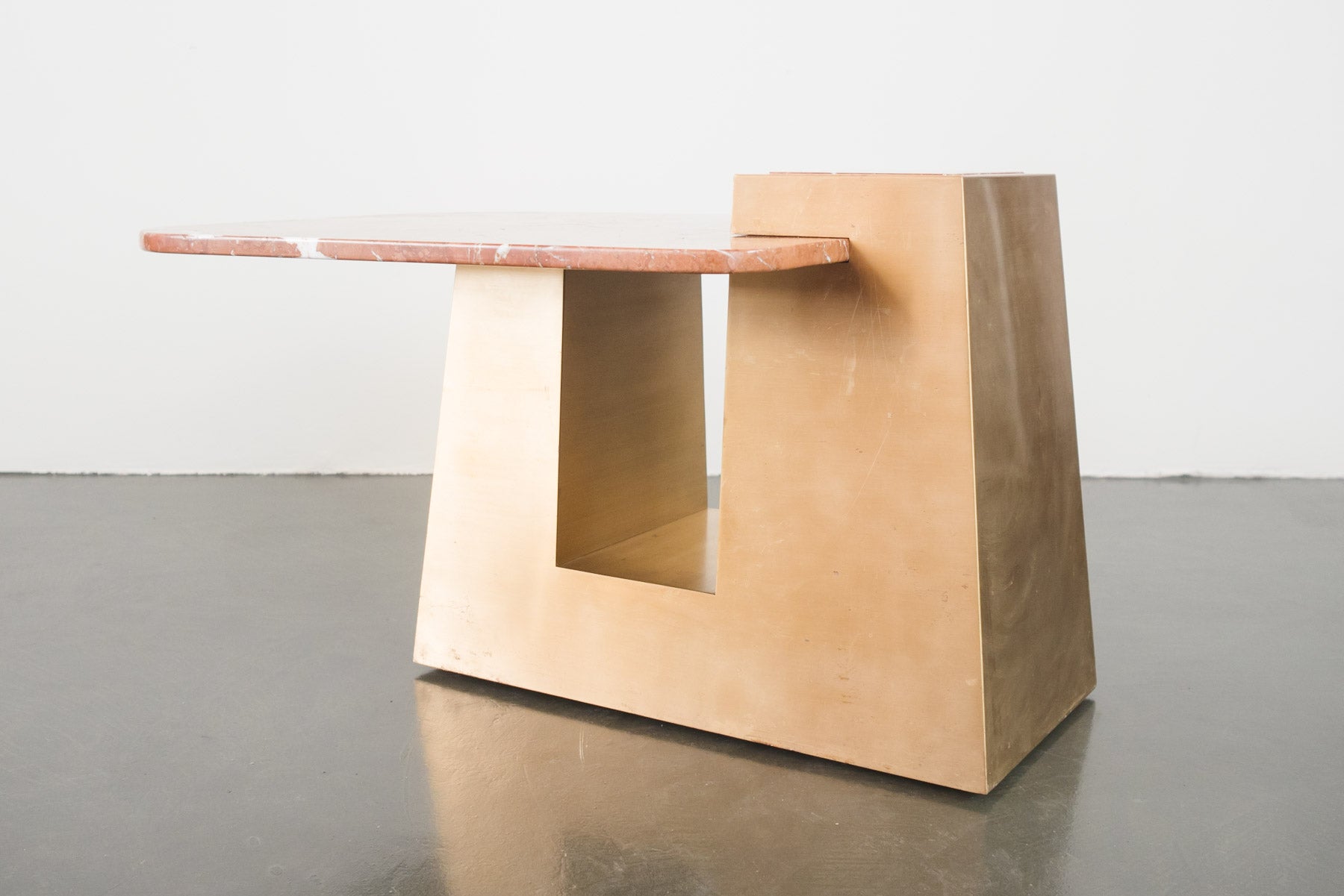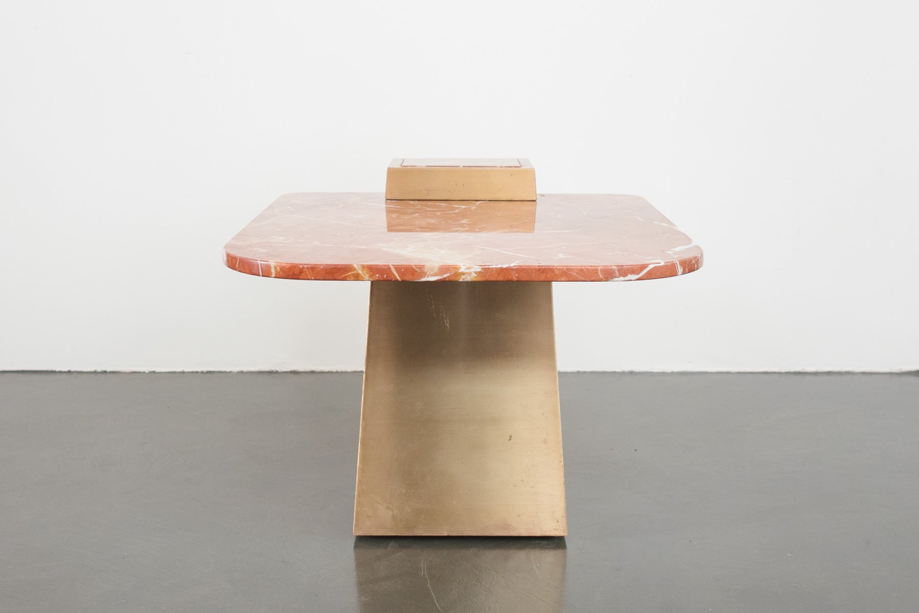 style: modern, geometric, regency, marble, coffee table, plant stand material: stone (marble), metal (brass) age: vintage condition: good, age related wear - see pictures