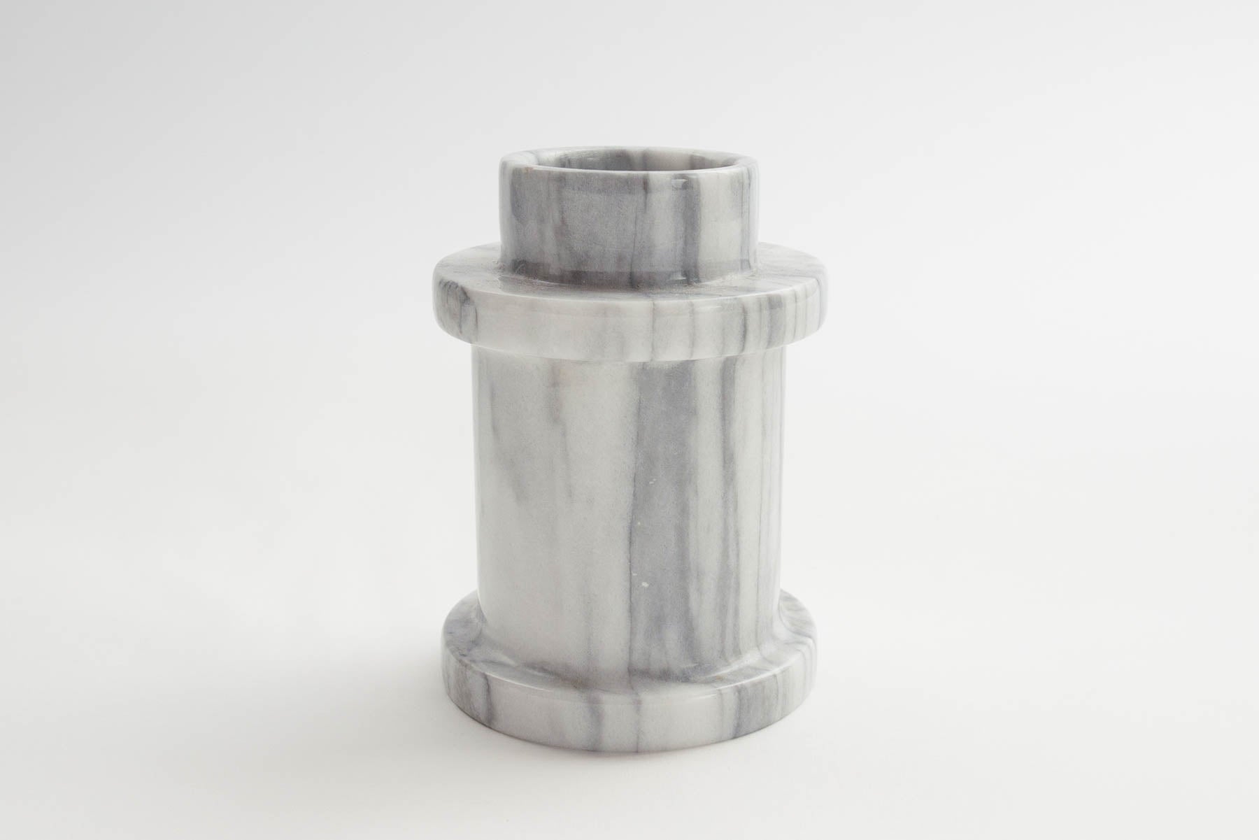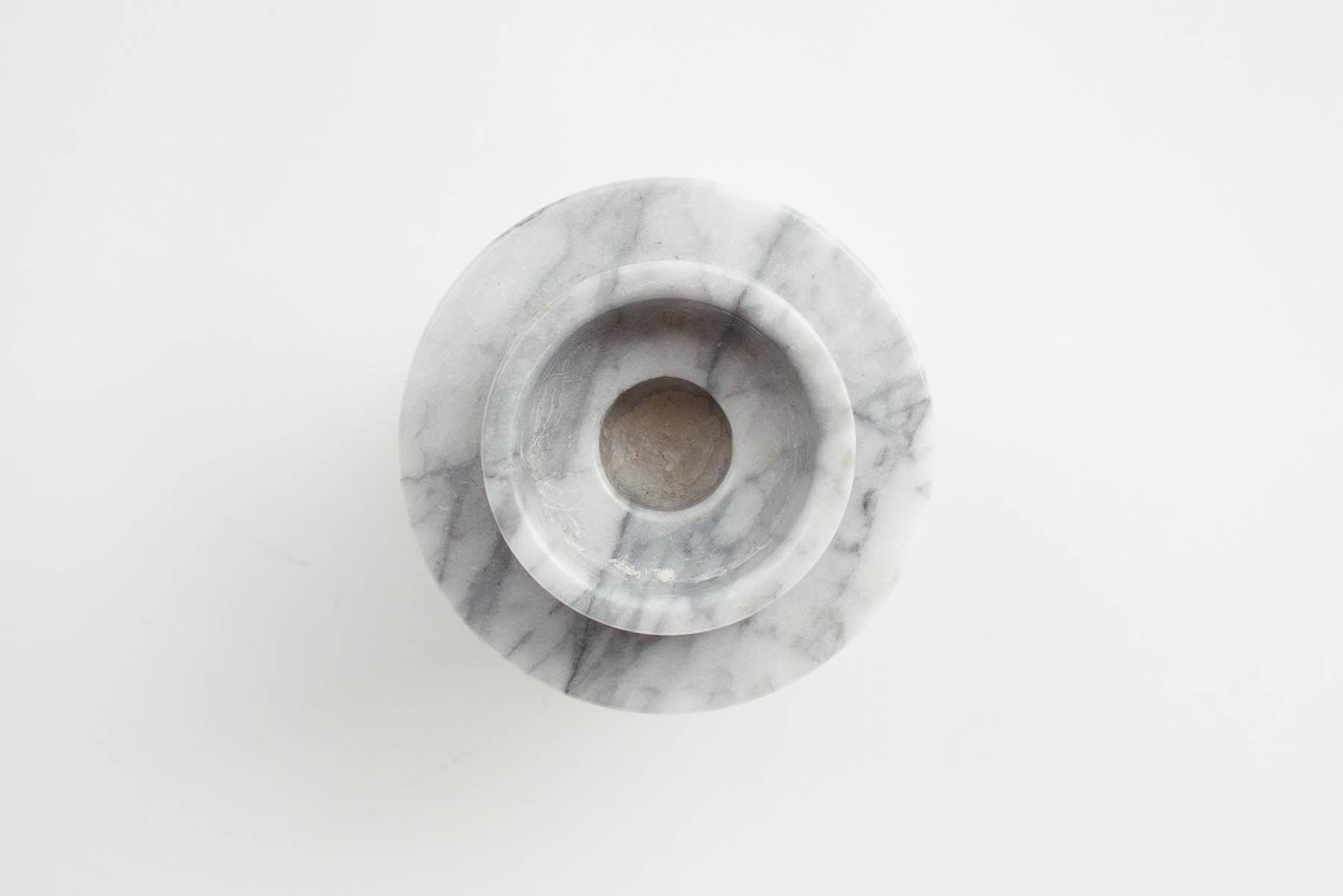 style: minimalist, modern, stone, candle holdermaterial: marbleage: vintage condition: good, age related wear - see pictures3.5" diameter x 5" height