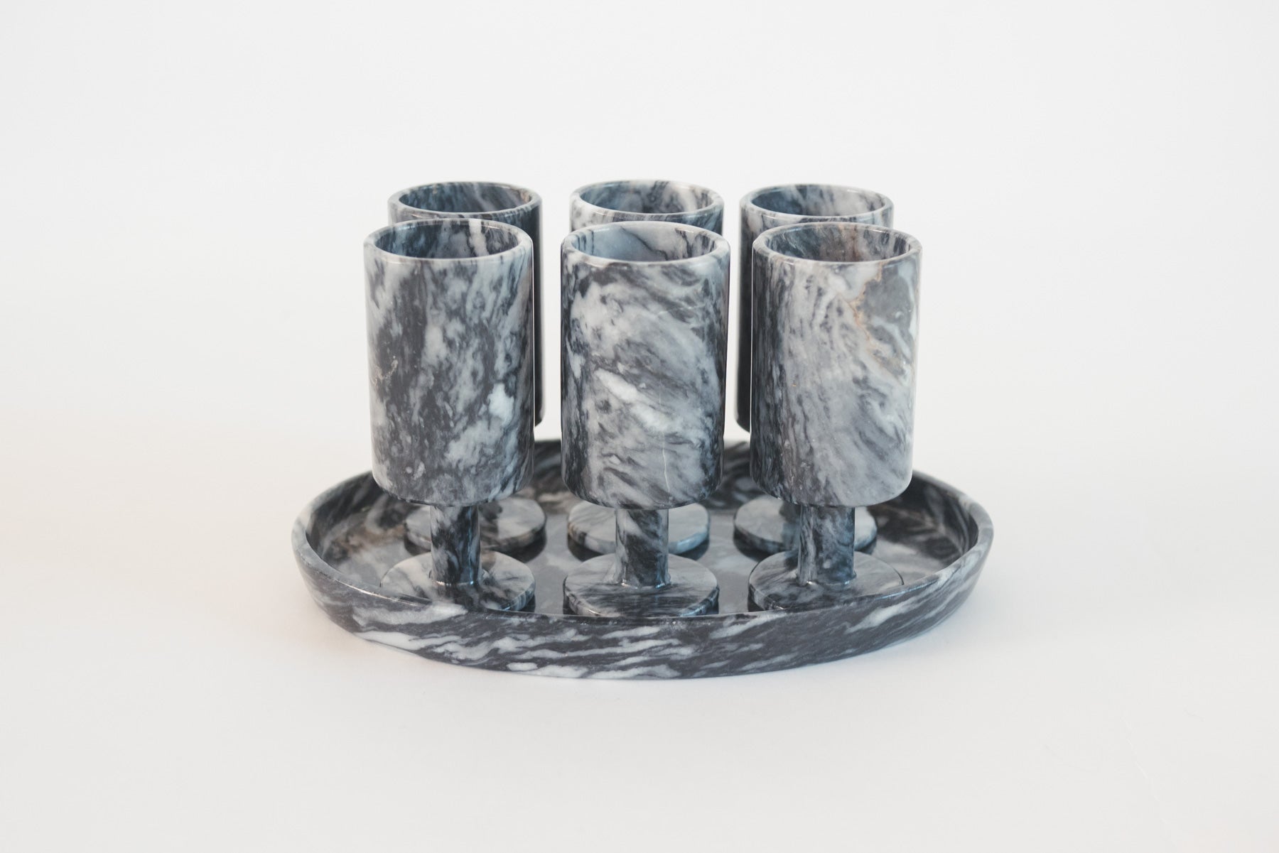 style: carved, footed cup, shot glass, tray, 6-piece, set, tabletop, serveware