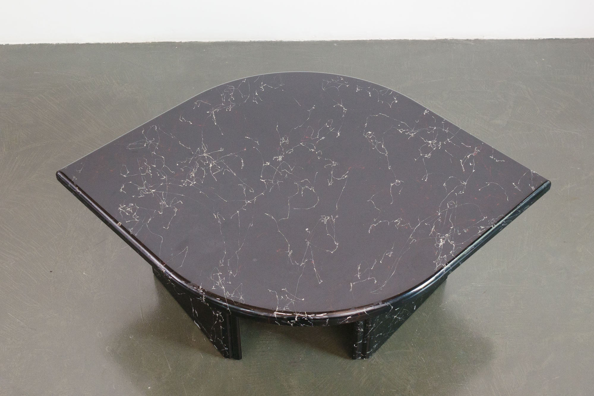 style: modern, teardrop, coffee tablematerial: wood, lacquer (marble pattern)age: vintagecondition: good, age related wear - see picturessku: hs-444