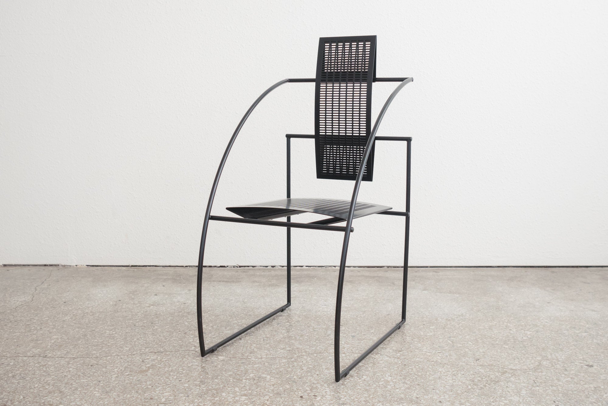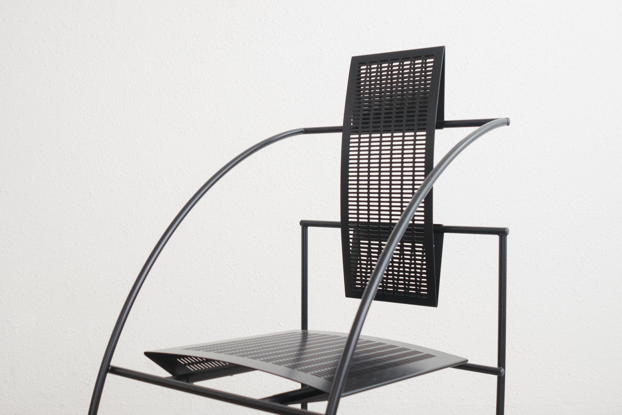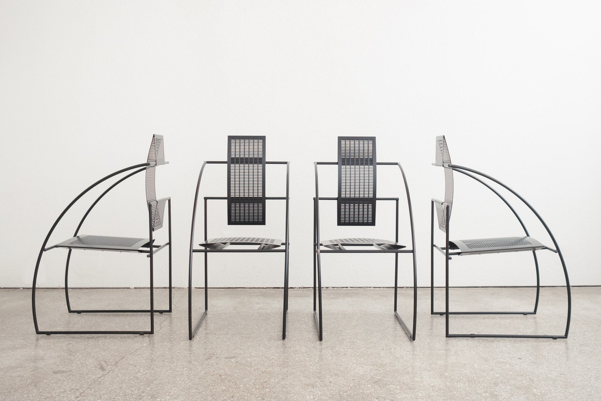 style: Mid Century, Modern, Quinta, dining, occasion, set of 4, chairs material: enameled steel brand: Alias Design designer: Mario Botta age: vintage, mid-80s condition: good, age related wear - see pictures