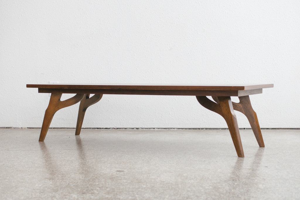 style: Mid Century, Modern, coffee table, benchmaterial: wood (walnut)age: vintagecondition: good, age related wear - see pictures53" wide x 21" deep x 13.5" high