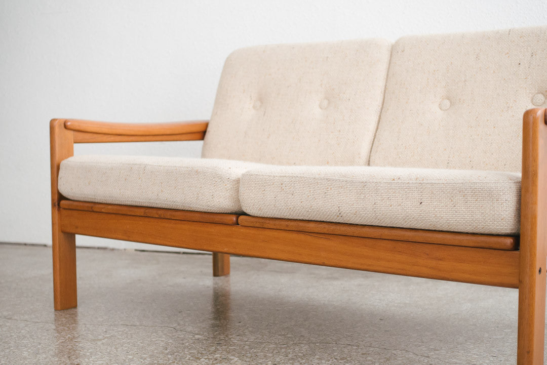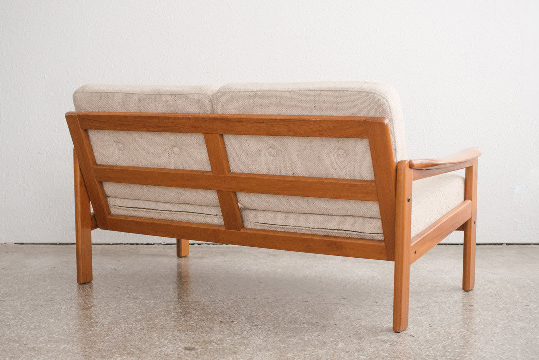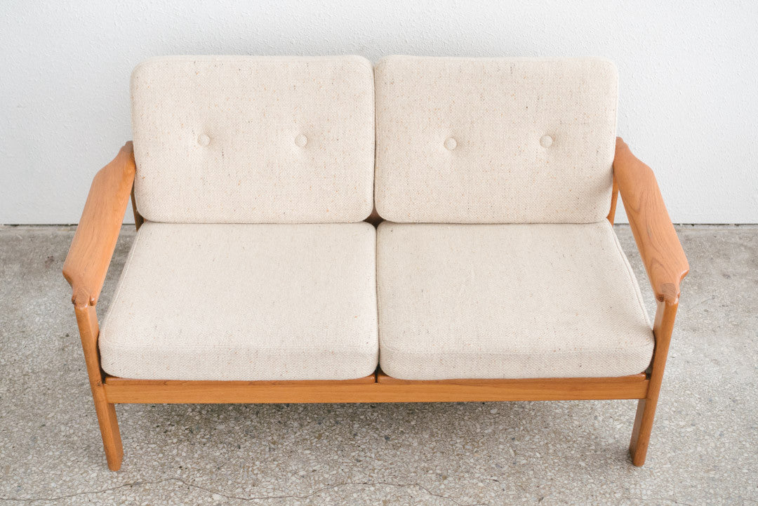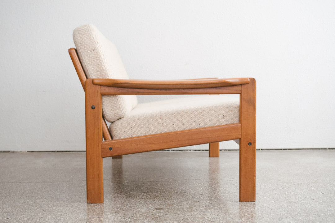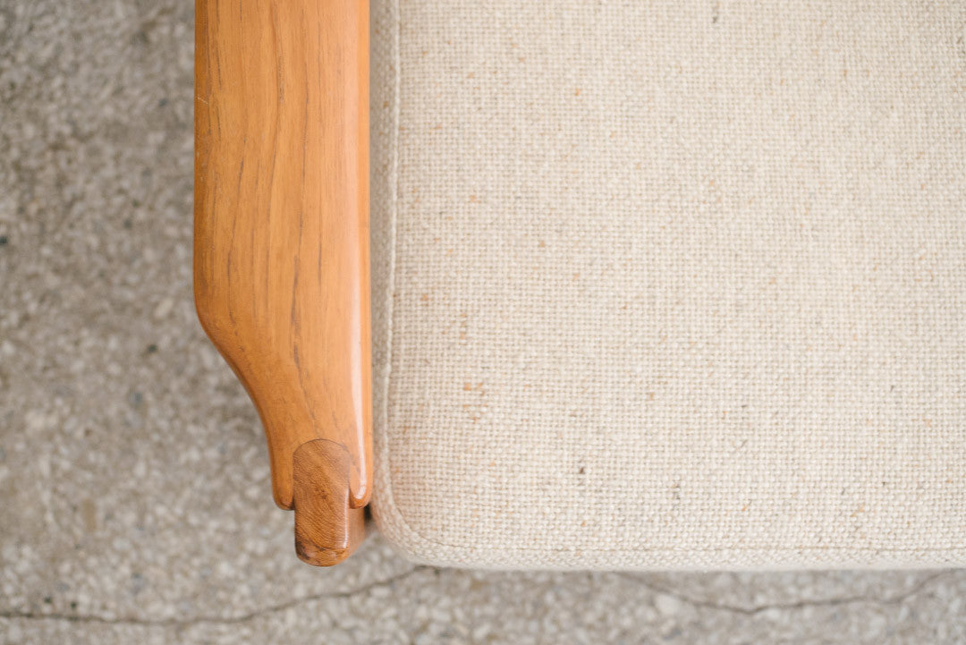 material: wood (teak), pirelli rubber straps, cream wool upholstery