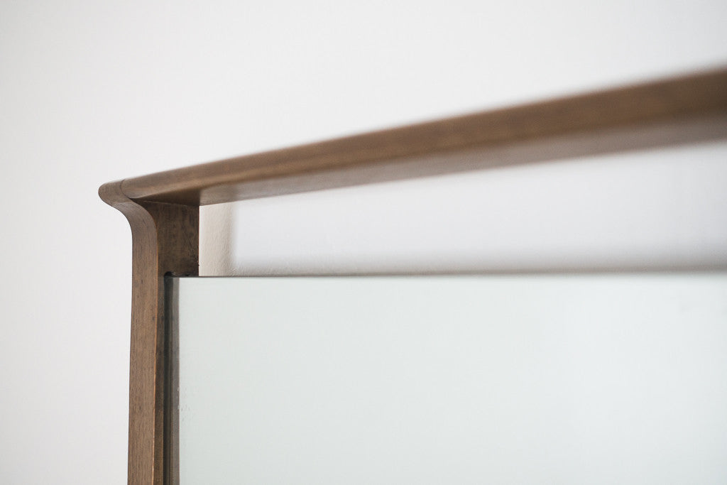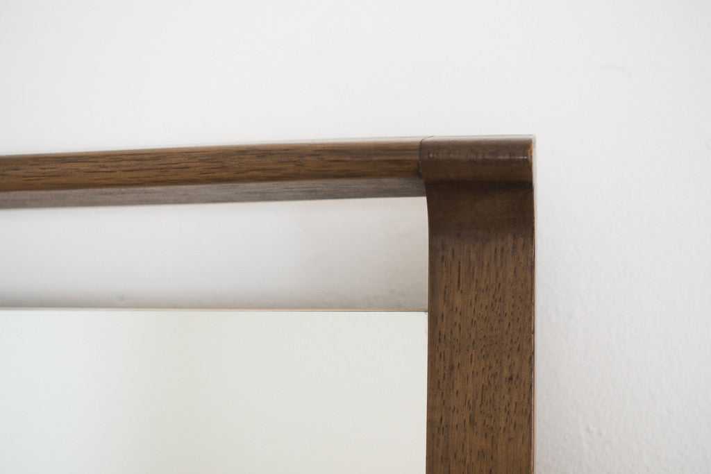 style: Mid Century, carved, walnut, mirror, wall mount