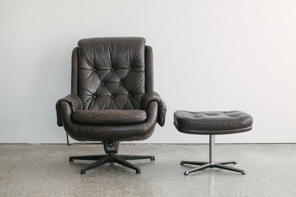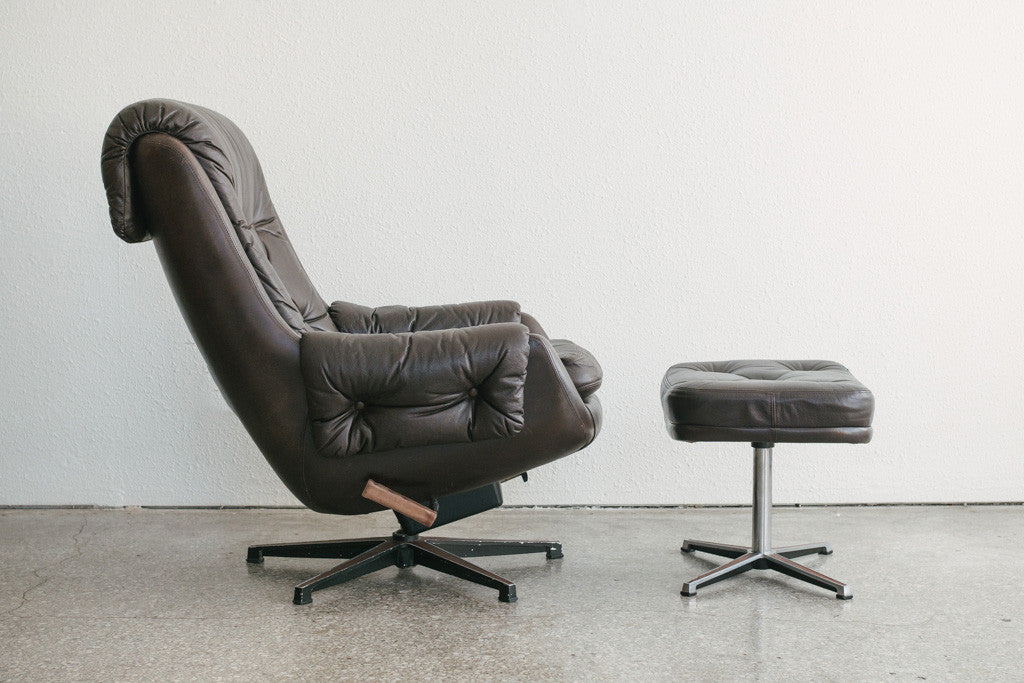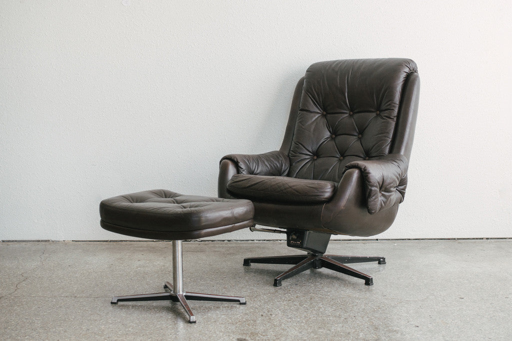 style: Mid Century, Modern, tufted, reclining chair and ottoman set