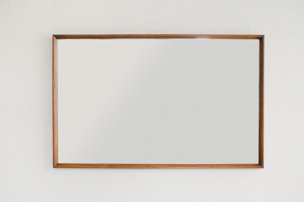 style: Mid Century, walnut trim, mirror, wall mountmaterial: wood, glassage: vintage condition: good, age related wear - see pictures