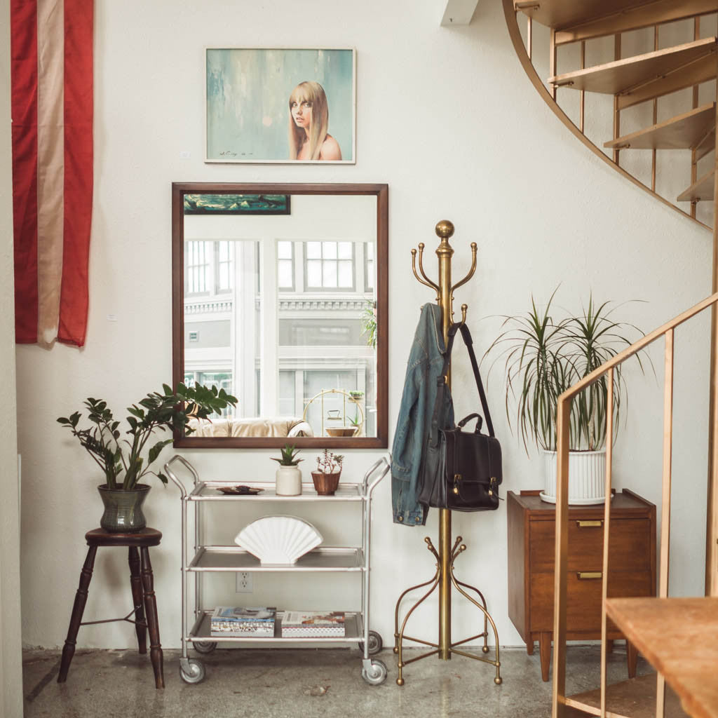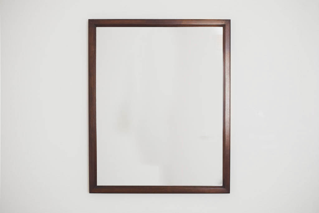 This vintage Mid Century mirror was made in the USA by Lane. It has a dark wood frame, is in great shape and would be a nice addition over a bathroom vanity, dresser or in an entryway. See pictures for detailed condition.