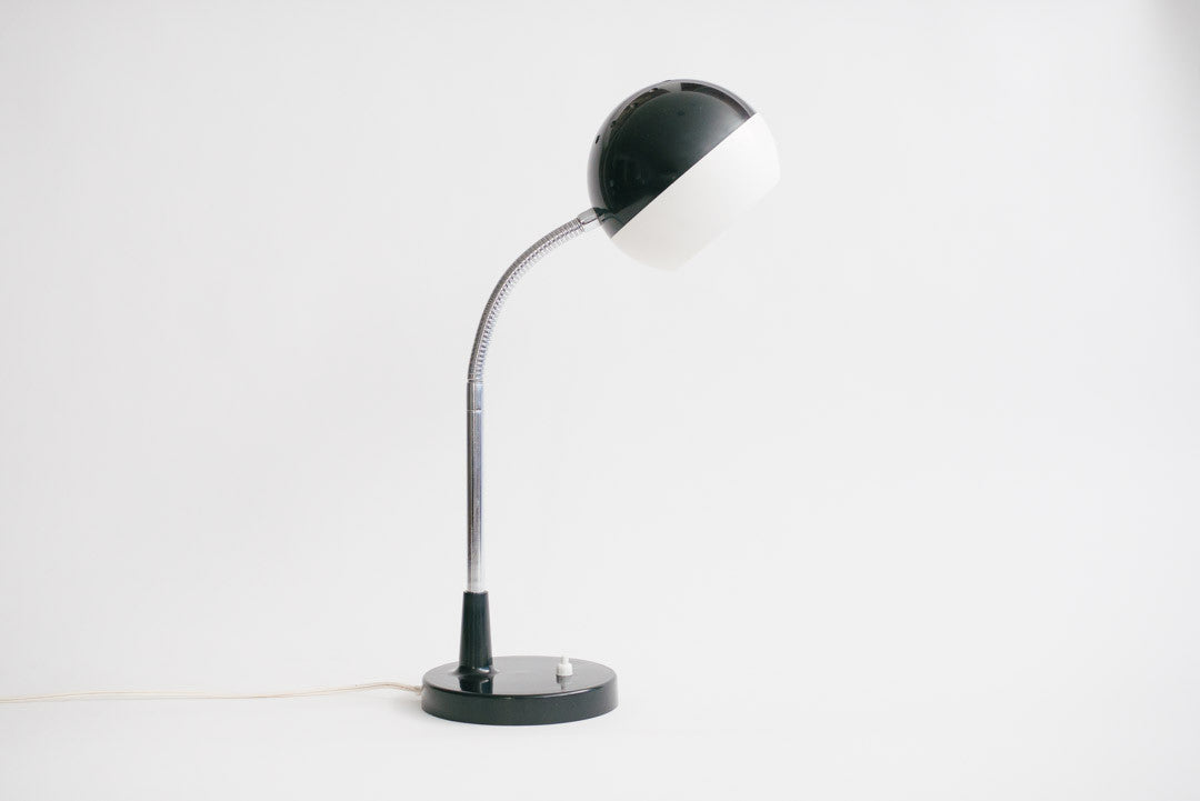 style: modern, mod, gooseneck, eyeball, eye, desk, table, lampmaterial: metal, plastic / adjustablefeature: adjustable direction and heightage: vintage, Mid Centurycondition: good, age related wear - see pictures