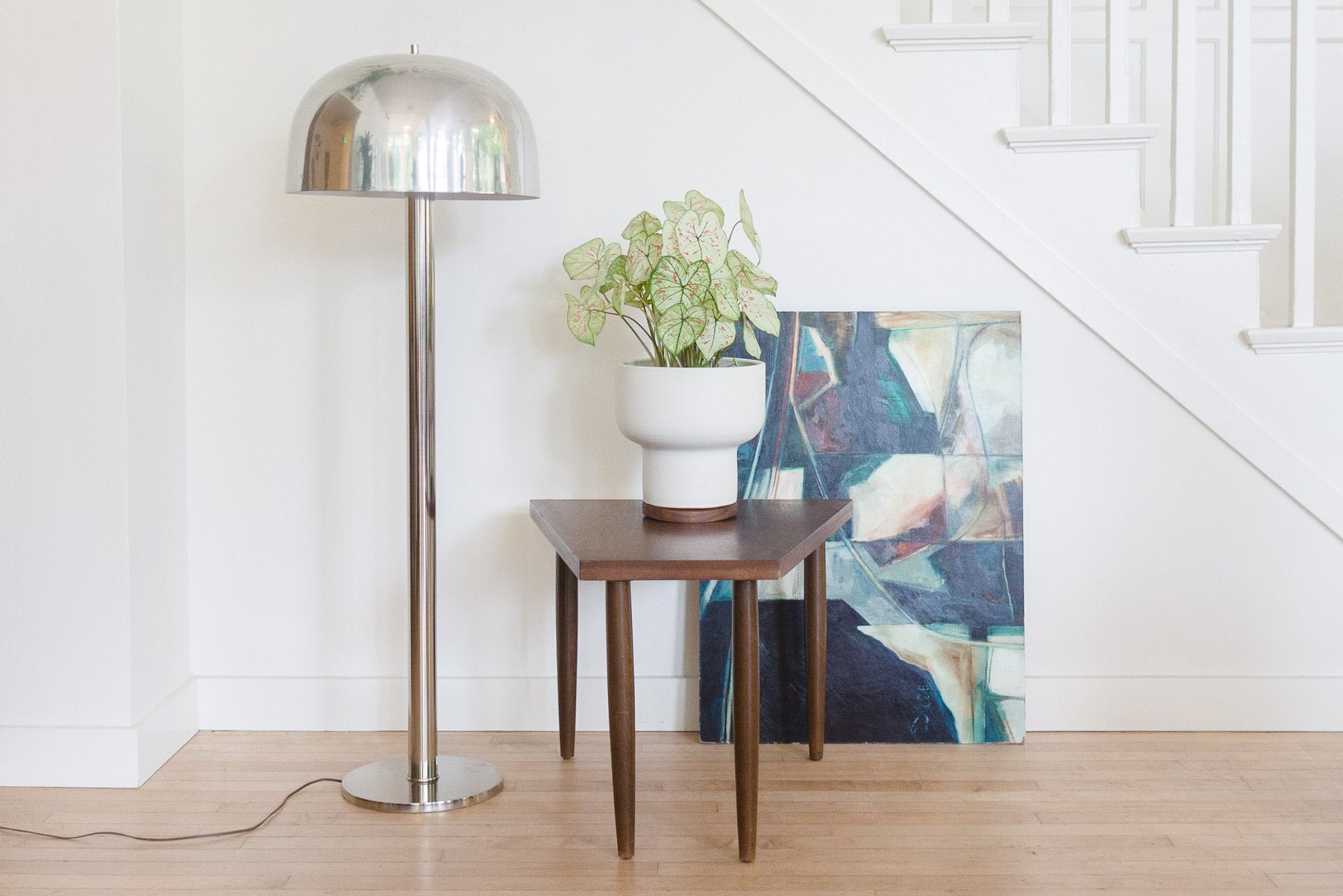 style: modern, minimalist, chrome, mushroom, floor lamp material: aluminum, chrome plated designer: Walter Von Nessen age: vintage, Mid Century condition: good, age related wear - see pictures