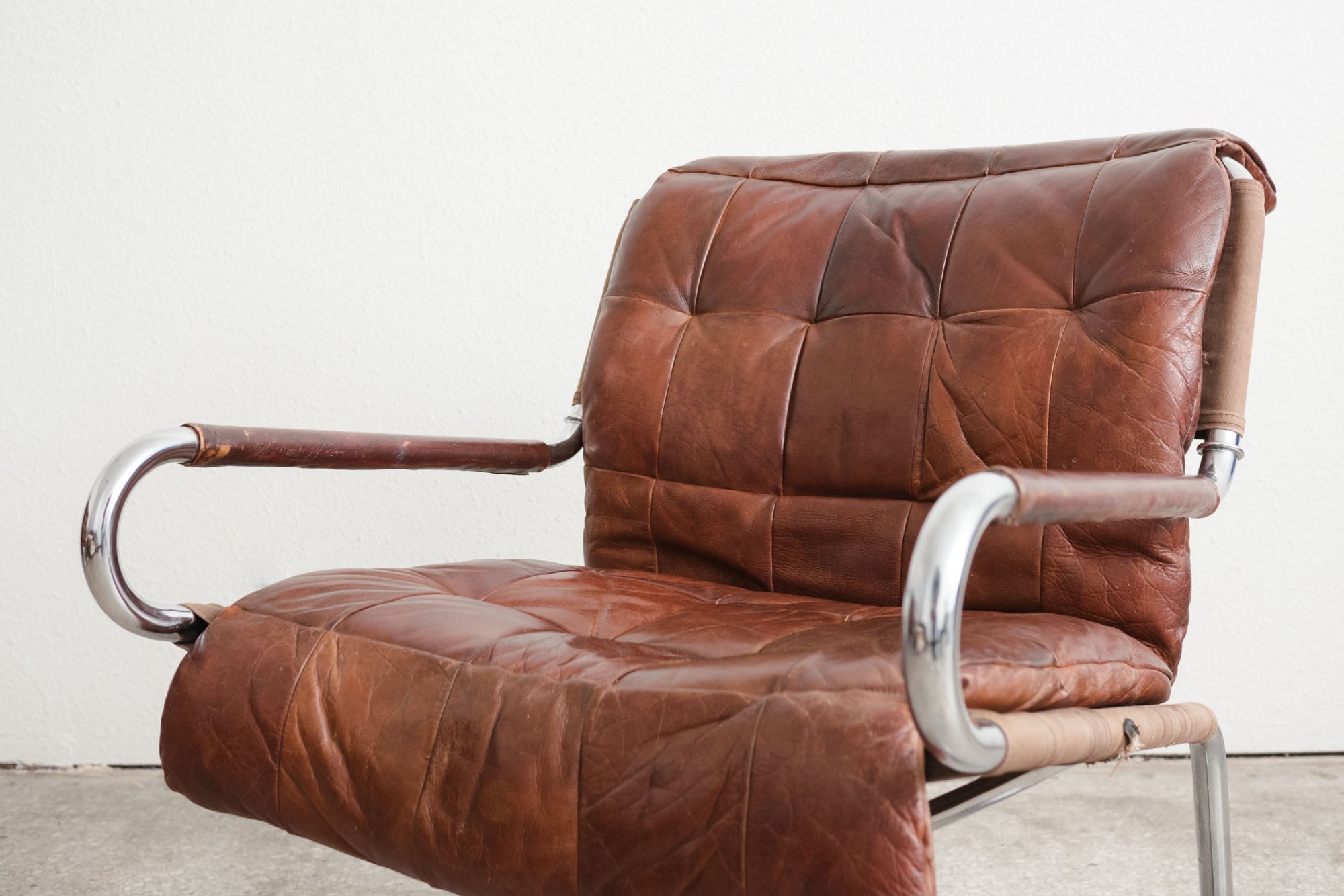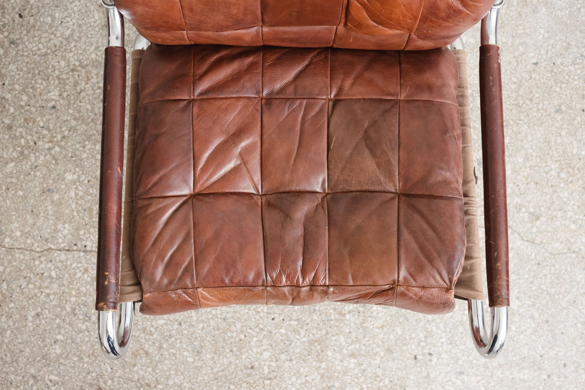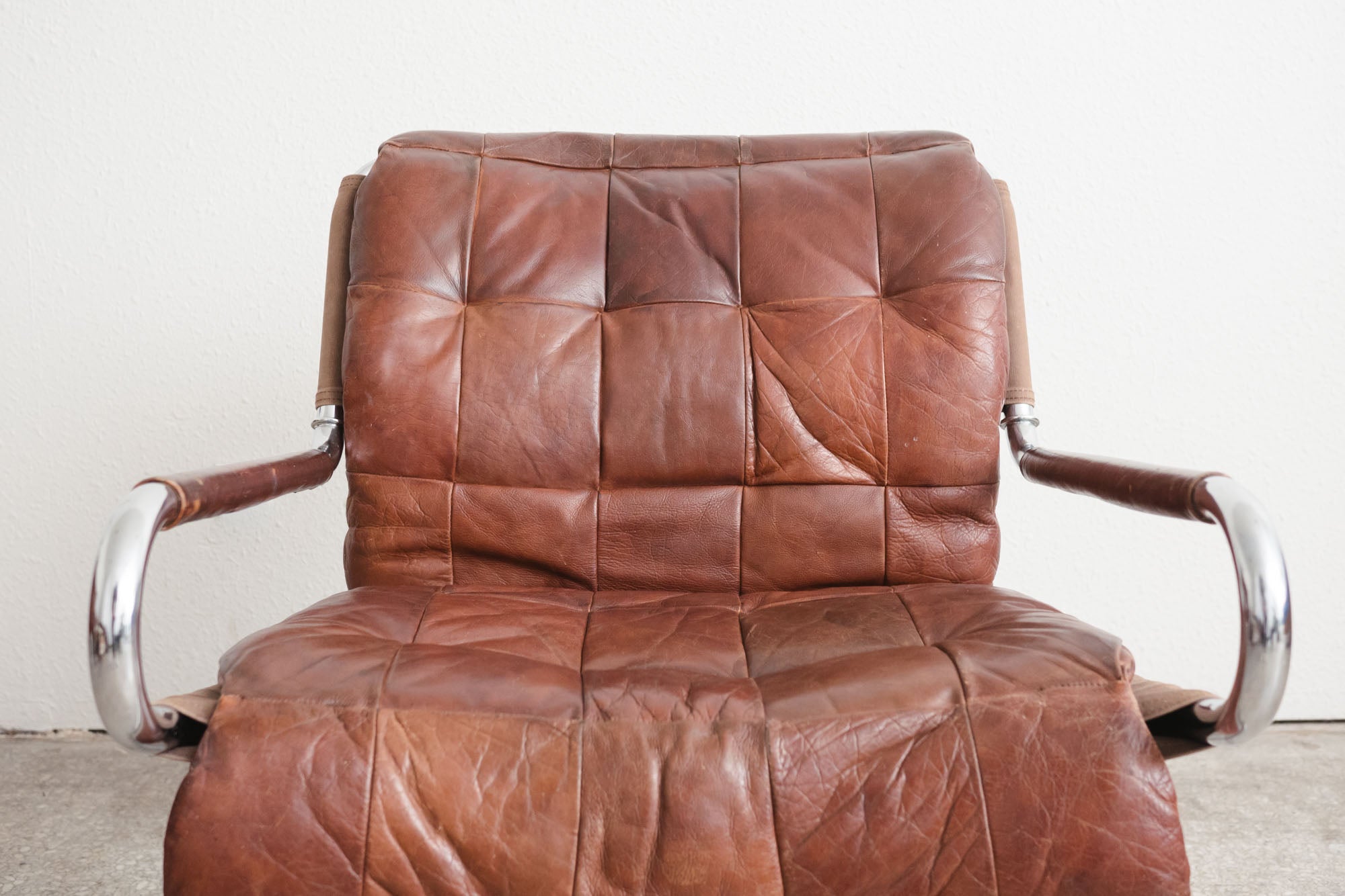 style: modern, leather, cantilever, lounge chairmaterial: metal, chrome, leather, canvascolor: brownage: vintage, Mid-Centurycondition: good, age related wear - see pictures