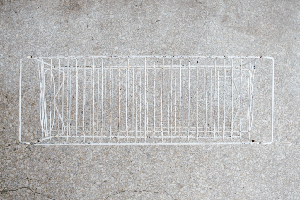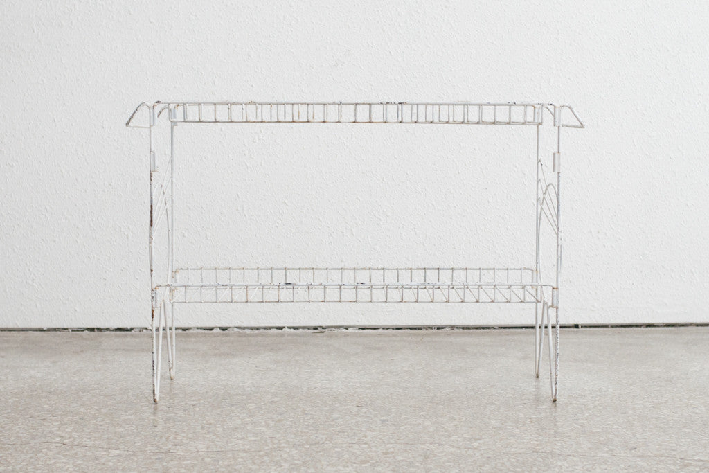 style: Mid Century, wire, plant stand, shelf, foldingmaterial: white metal age: vintagecondition: good, age related wear - see pictures