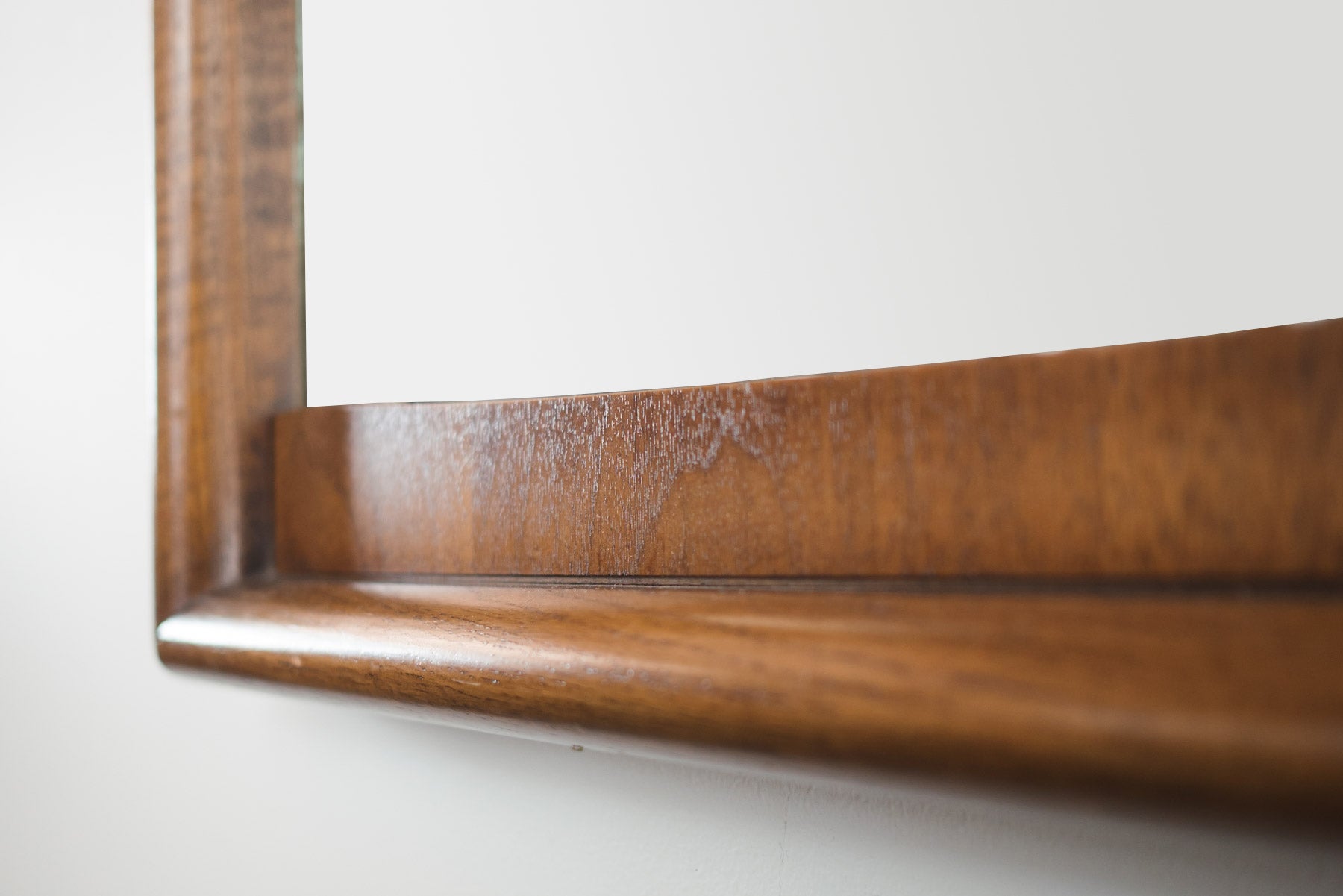 style: modern, minimalist, vertical, wall mount, mirrormaterial: carved wood (walnut), glass age: vintage, Mid Centurycondition: good, age related wear - see pictures