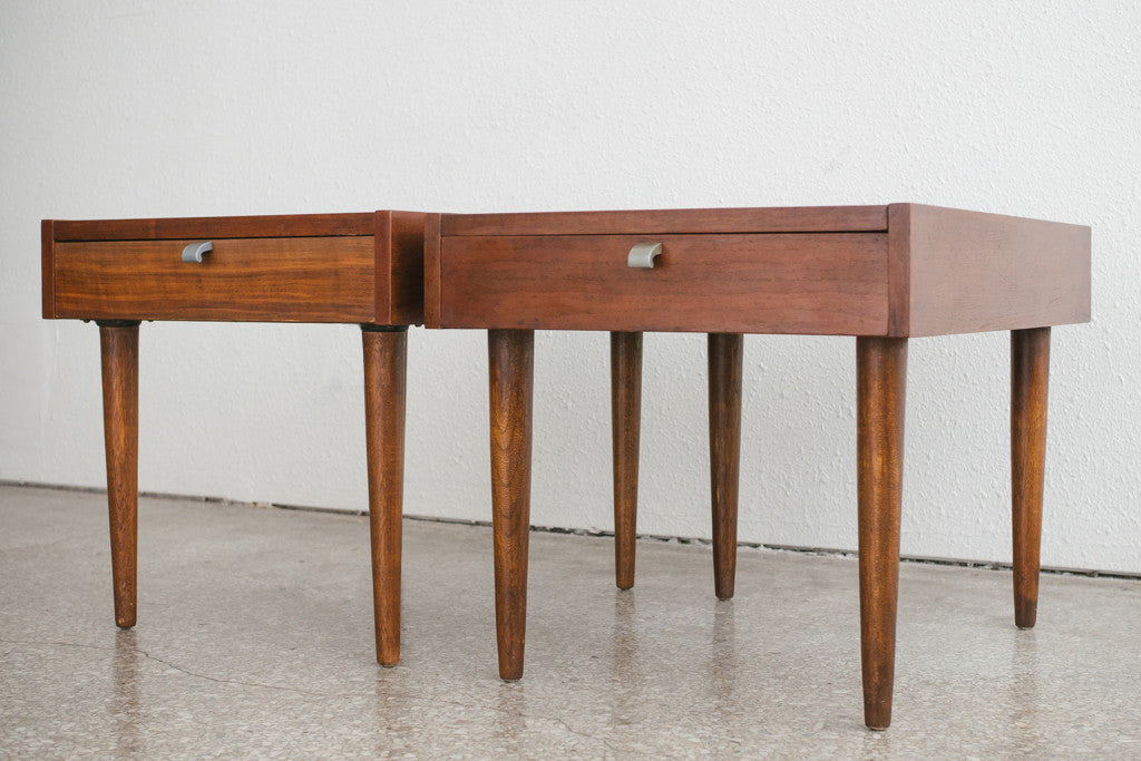 style: pair, Mid Century, Modern, side/end tables, single drawer