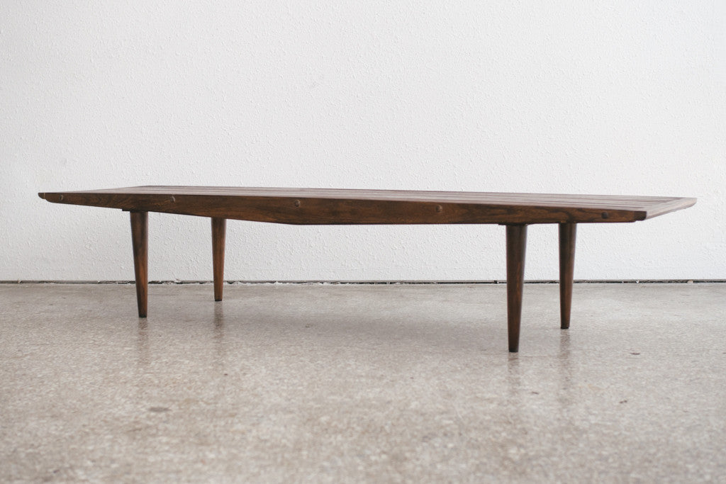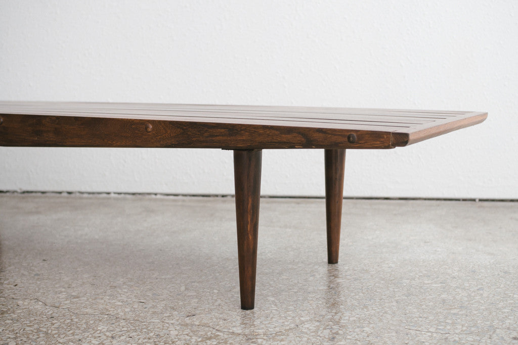 style: Mid Century, slat bench, coffee tablematerial: woodage: vintagecondition: good, age related wear - see pictures