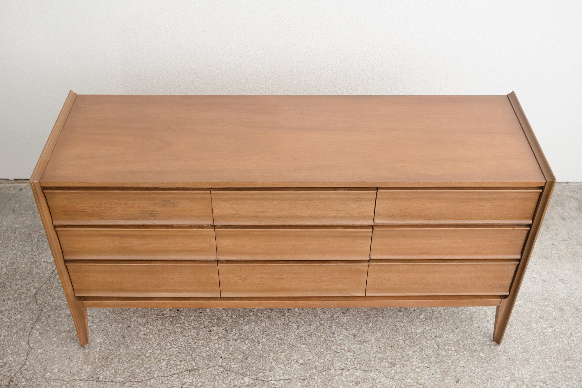 style: mid-century, 9-drawer, modern, buffet, credenza, dresser, lowboymaterial: woodage: vintagecondition: good, age related wear - see pictures