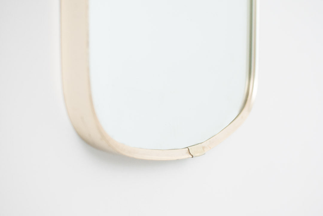 style: Mid Century, minimalist, framed, mirror, wall mountmaterial: metal, glassage: vintage condition: good, age related wear - see pictures