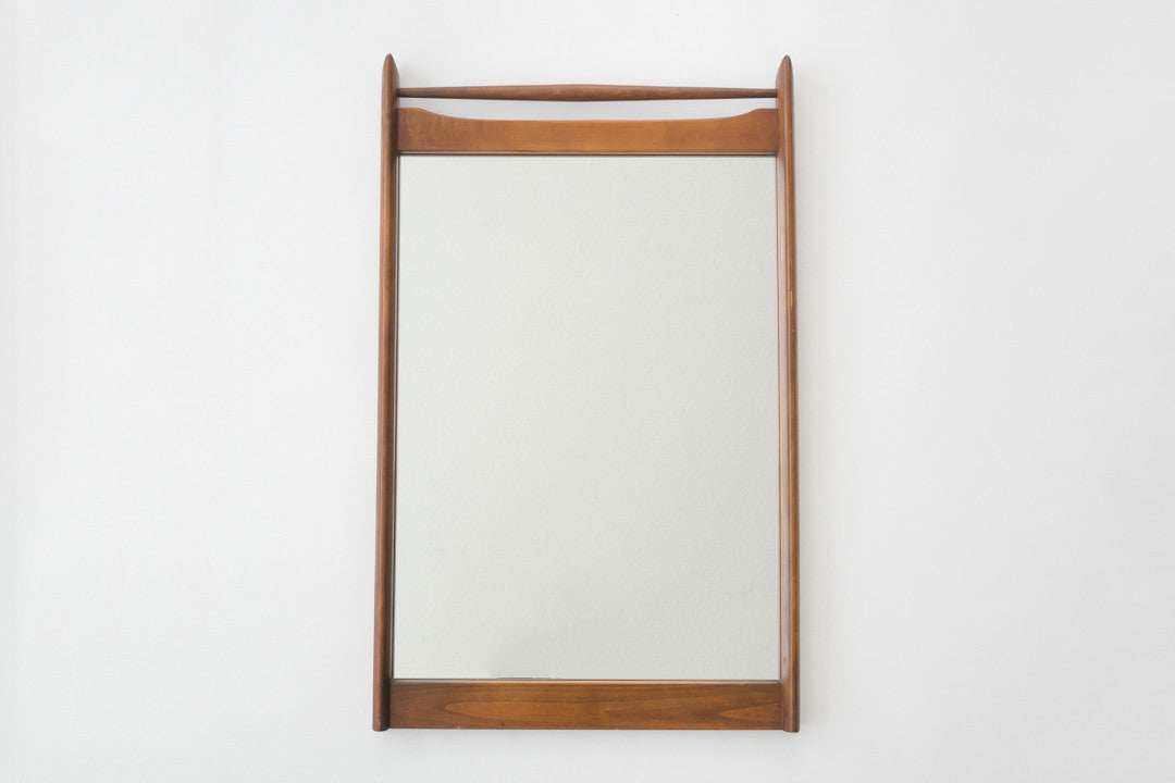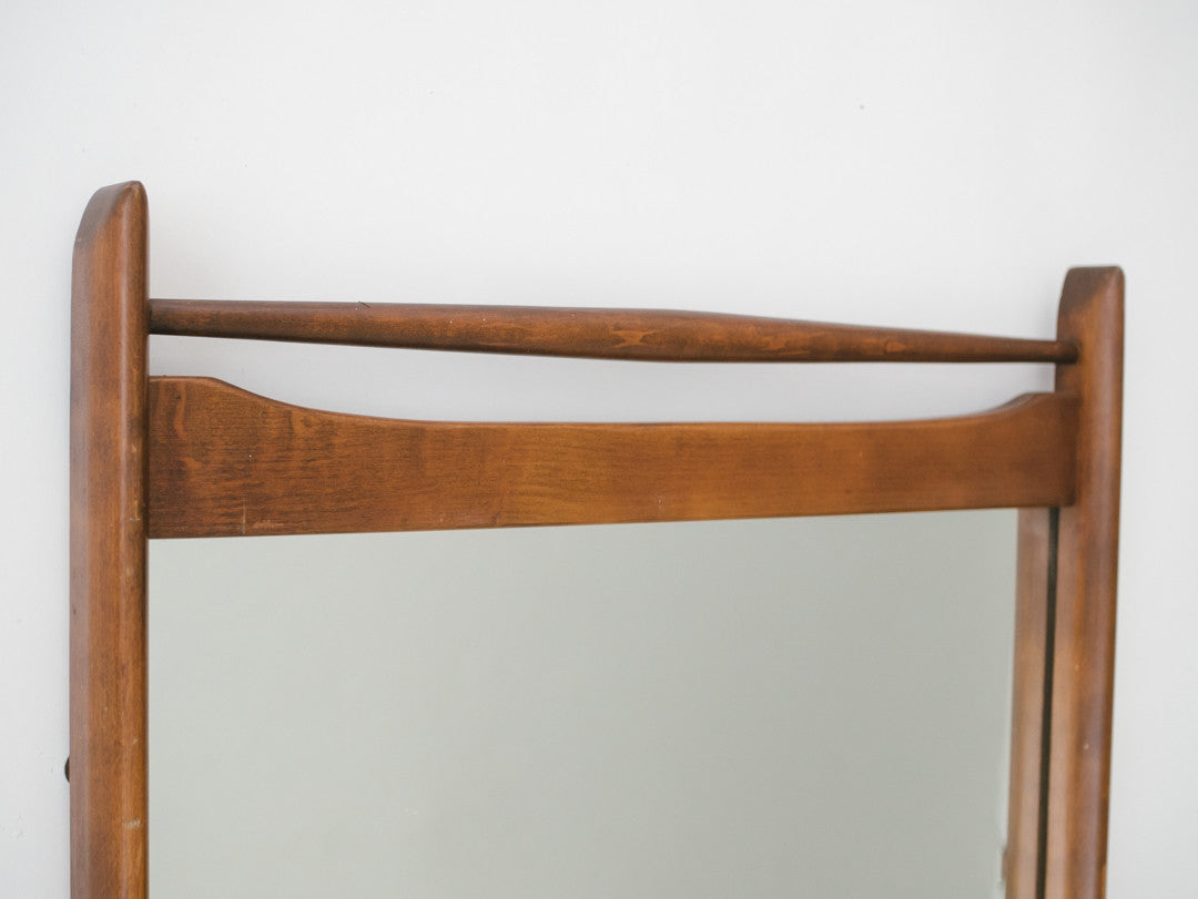 style: Mid Century, walnut trim, mirror, wall mountmaterial: wood, glassage: vintage condition: good, age related wear - see pictures
