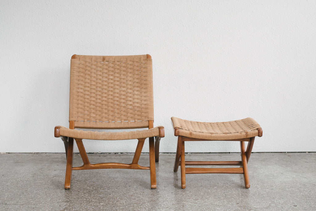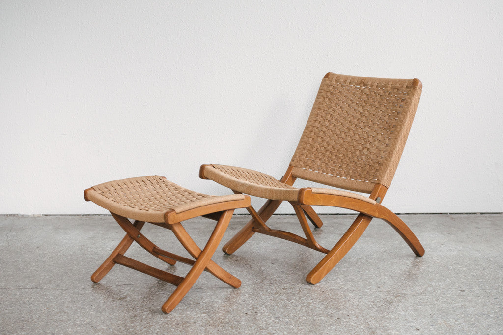 style: Mid Century, Wegner, folding, woven, chair & ottoman