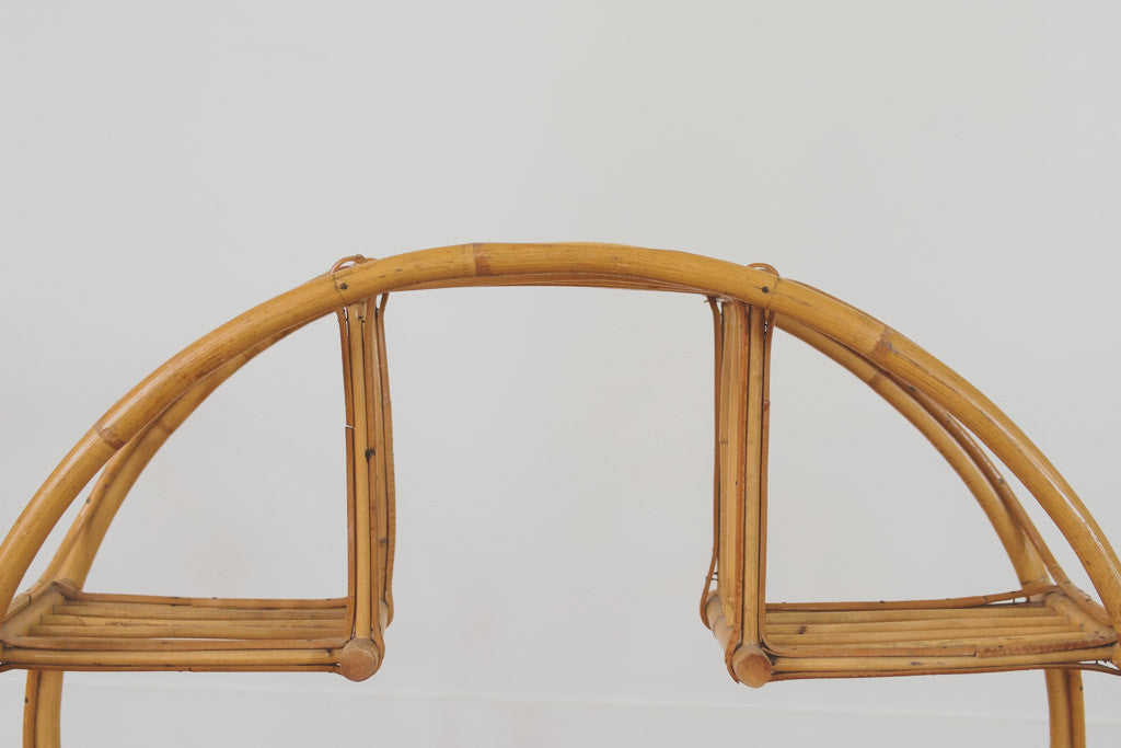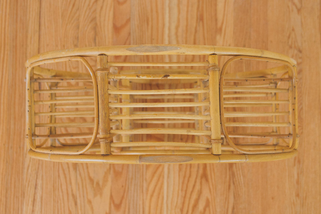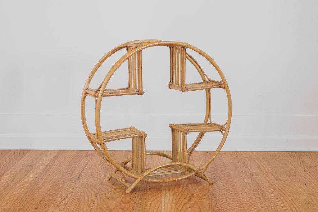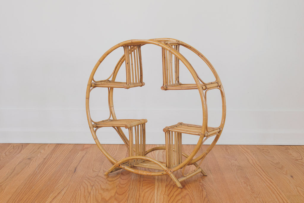 This vintage Mid Century bamboo shelf has six spots for plants, books or whatever you collect. It's in good shape with some age related wear. Please see pictures for detailed condition.