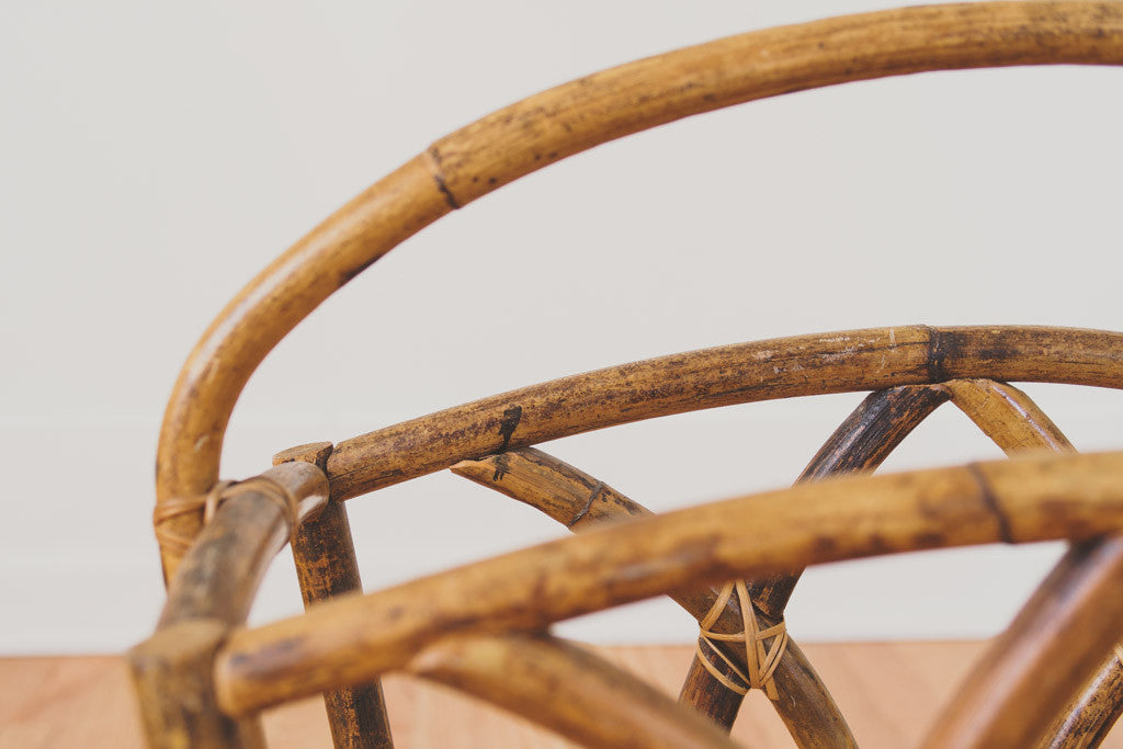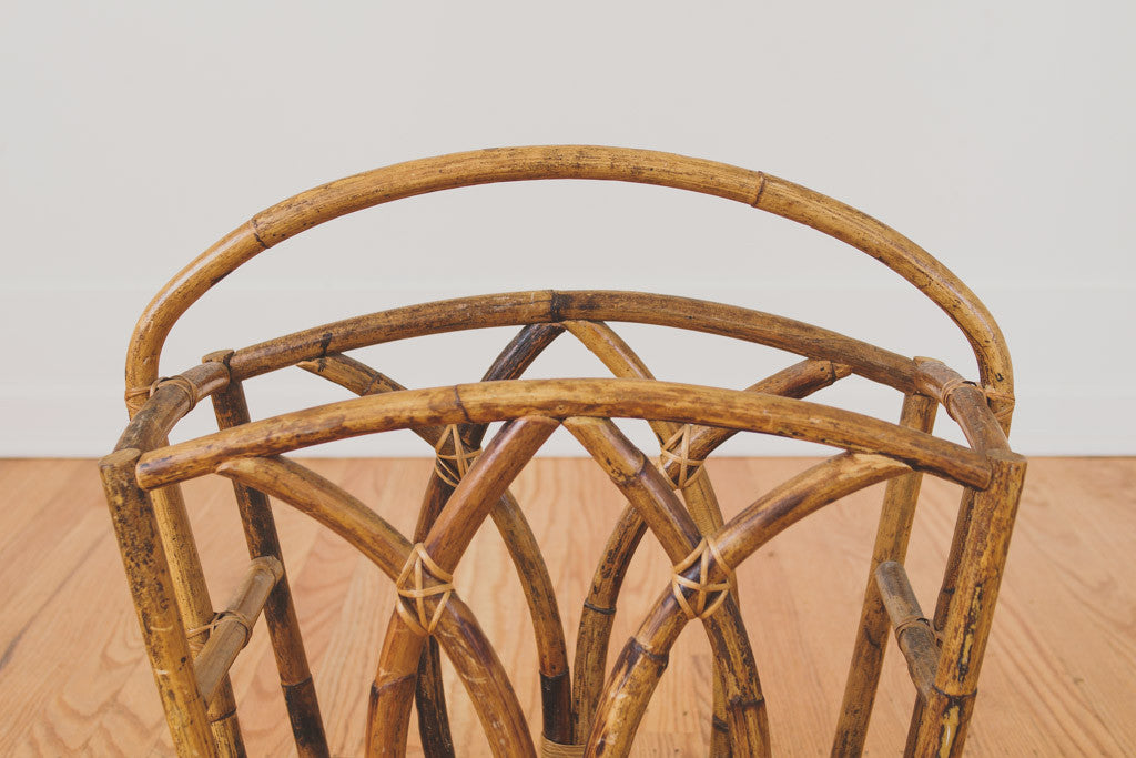 This vintage bamboo blanket holder would be perfect in an entryway, living room or bathroom. It's in good structural shape and could hold towels, magazines, books, blankets or firewood. Please see pictures for detailed condition.