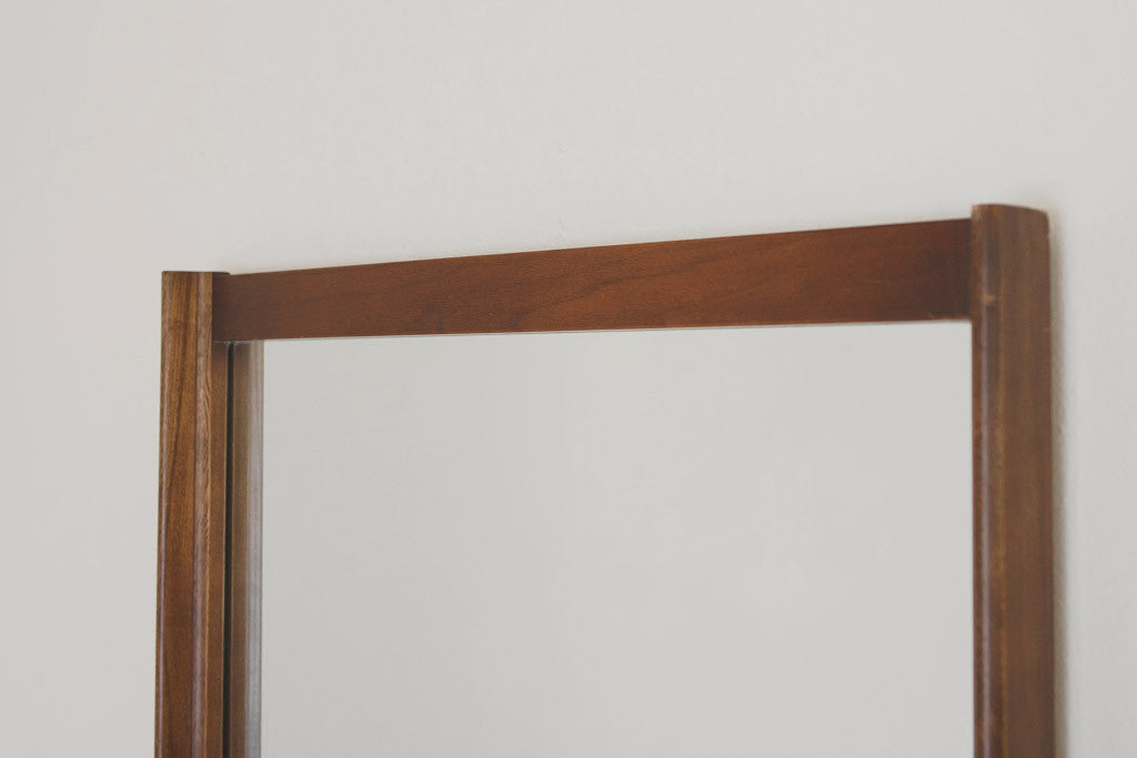This vintage Mid Century Bassett mirror has a carved walnut frame. The mirror and frame are in good shape and would be a nice addition over a bathroom vanity, dresser or in an entryway. Please see pictures for detailed condition.