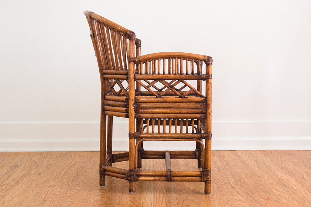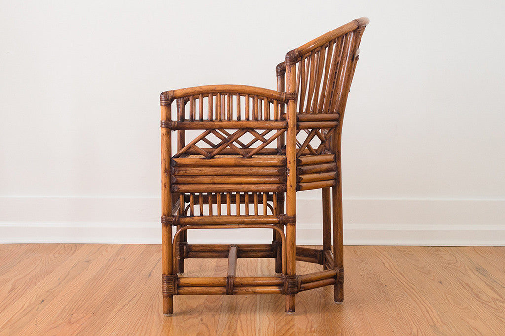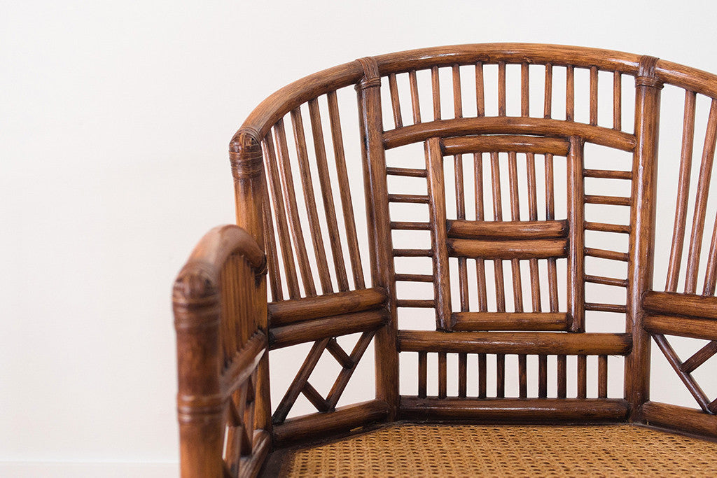 This vintage occasional chair has a dark bamboo-like frame and caned seat. It's a 1960's Thomasville design in amazing condition with almost no signs of wear. It's a comfortable size for living room seating but the seat height is such that it would also work at the head of a dining table or at a desk.