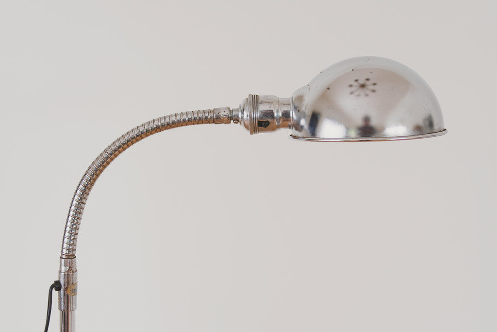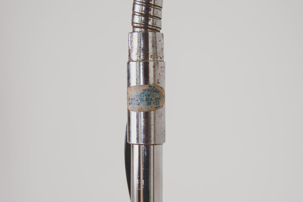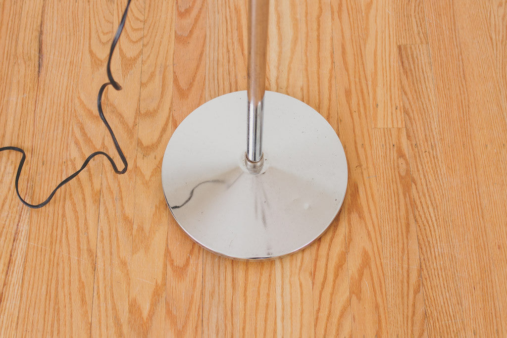 This vintage Mid Century floor lamp has a chrome finish and is adjustable in height and direction. It's in good working condition with some light surface wear. Please see pictures for detailed condition.