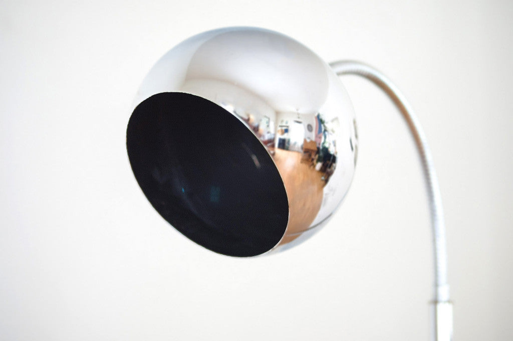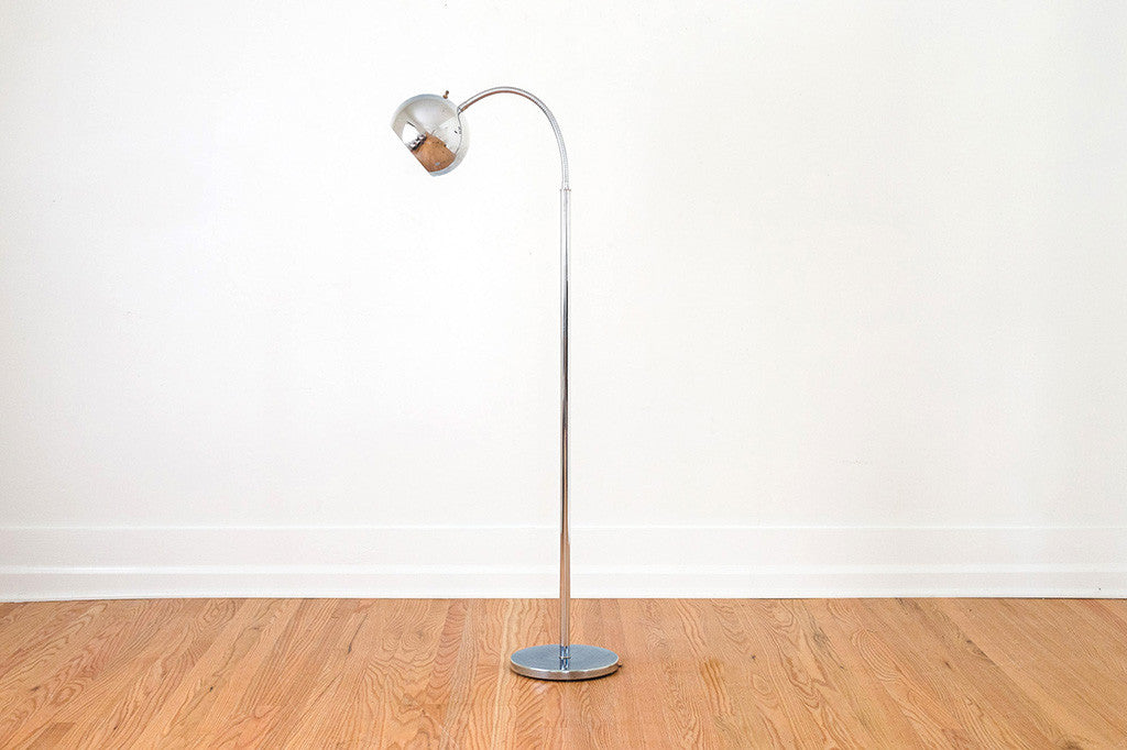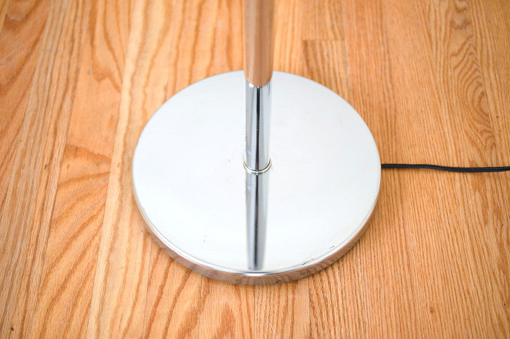 This Mid Century floor lamp has a chrome finish. It's adjustable in direction and height. Please see pictures for detailed condition of this piece.