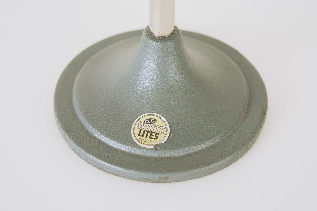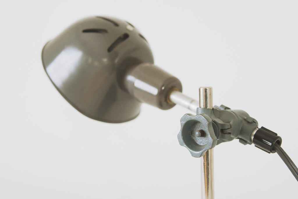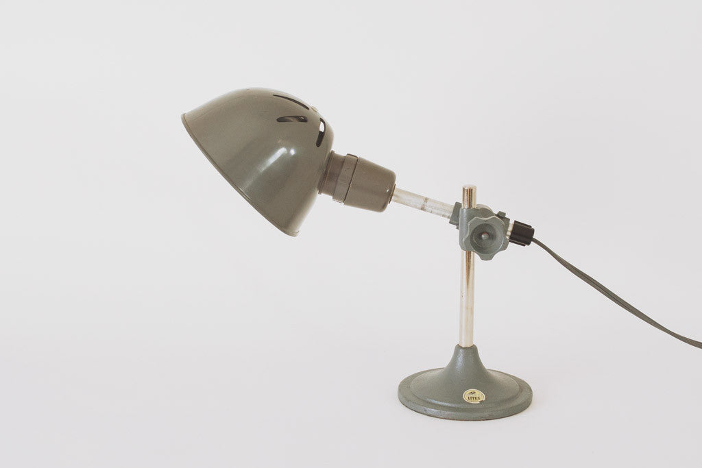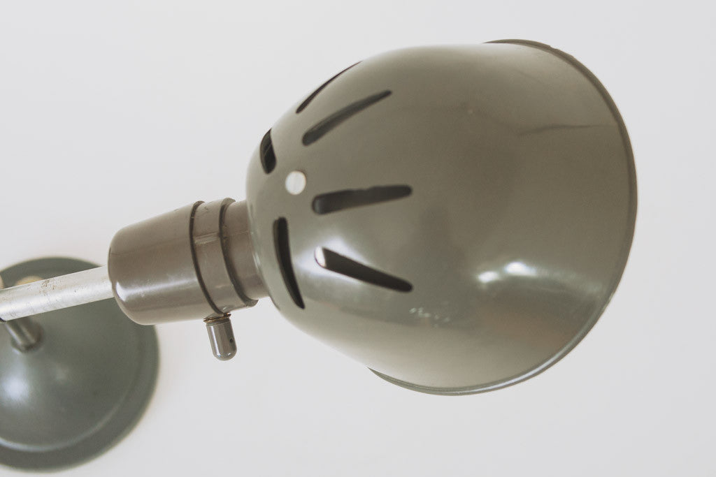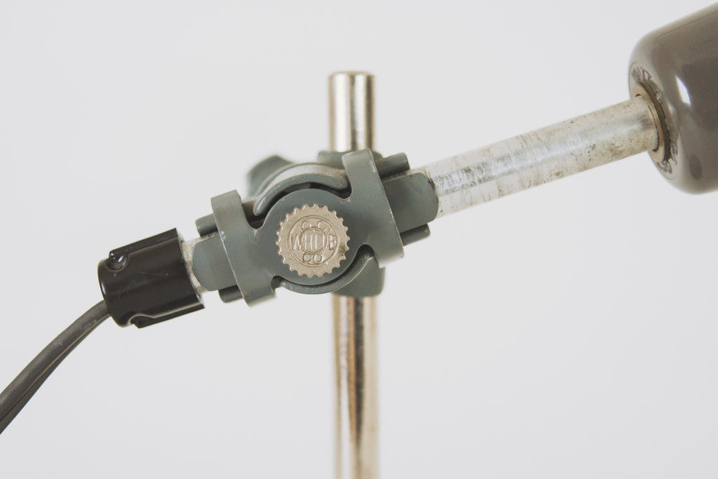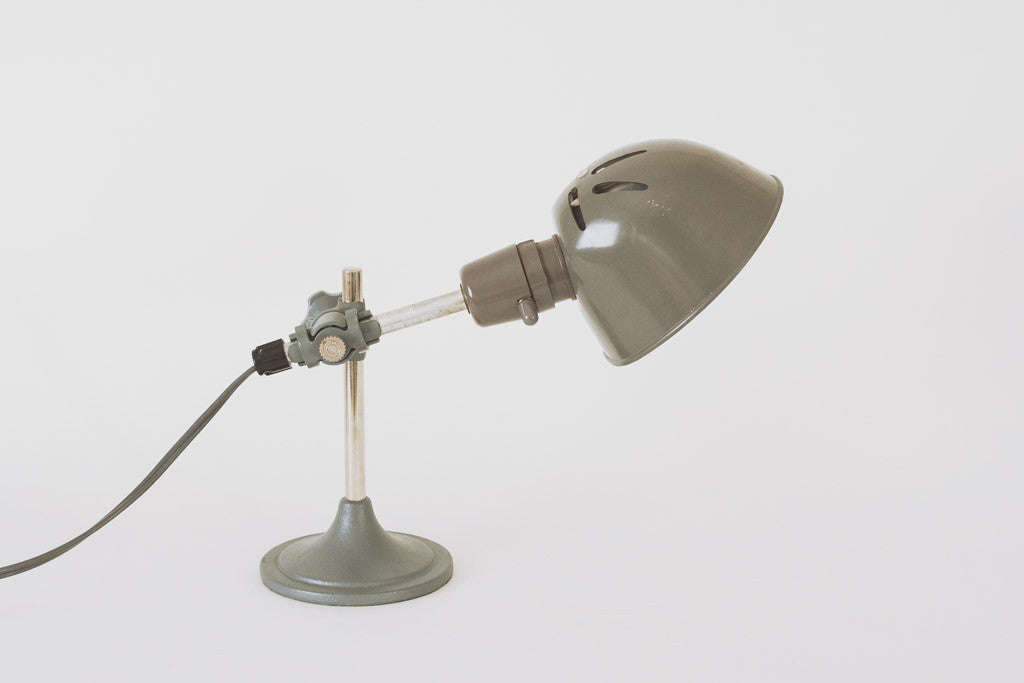 This vintage Mid Century desk lamp holds an individual bulb. It's adjustable in direction and height and is in good shape with age related wear. See pictures for detailed condition.