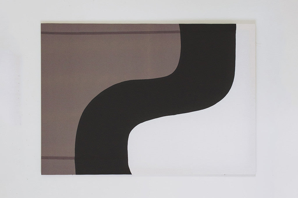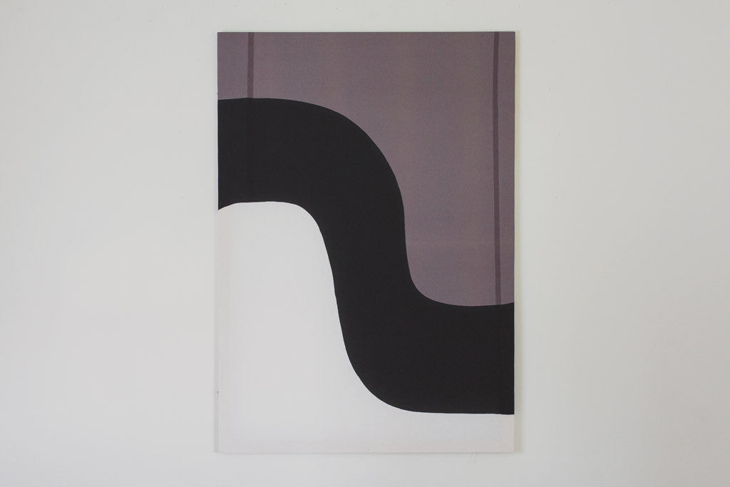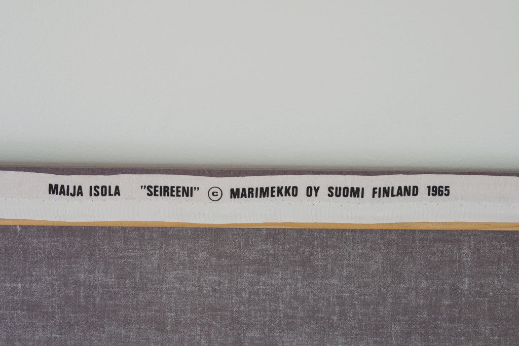 This large 1965 Finnish textile was designed by Maija Isola. It's framed with a white, black and grey abstract design. It's in good shape with age related wear. See pictures for detailed condition.