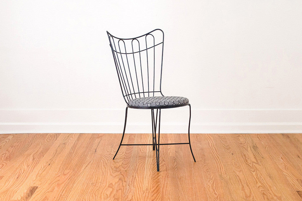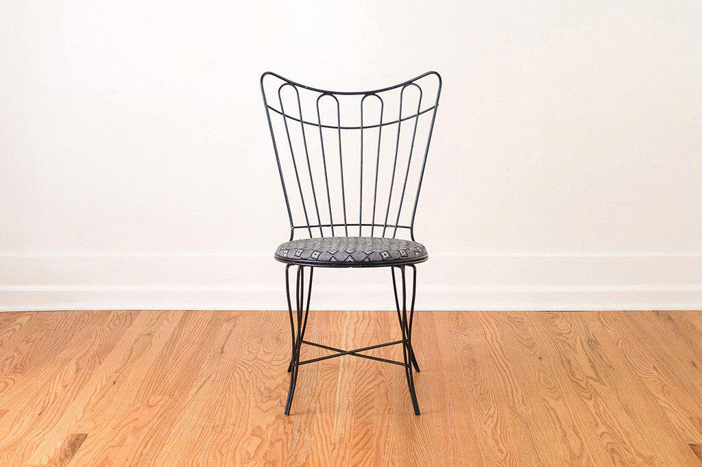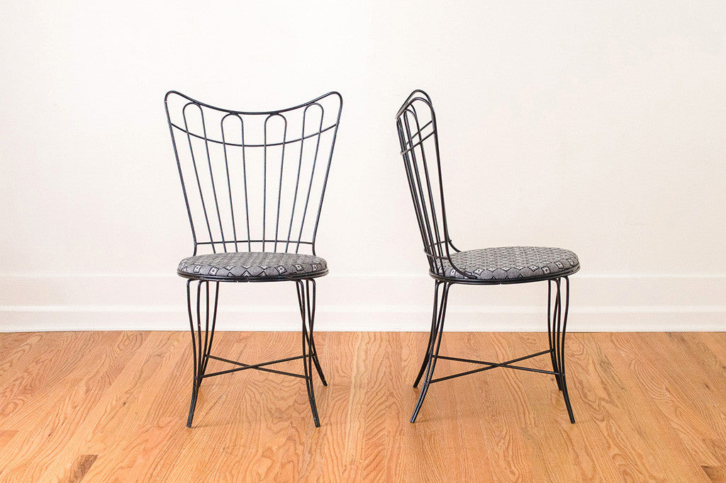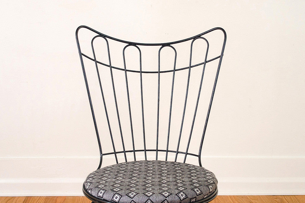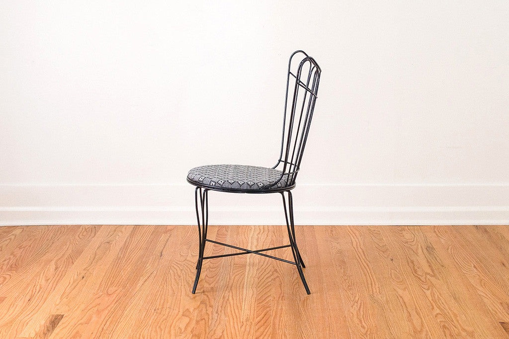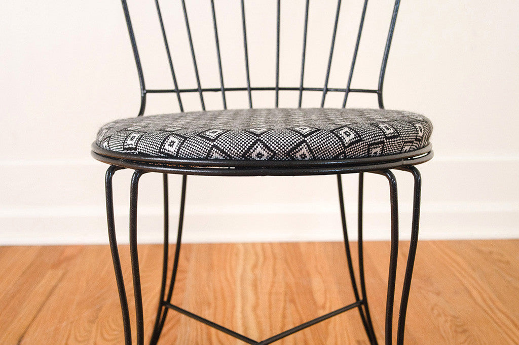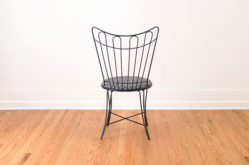This set of Mid Century chairs were painted black and reupholstered in a black and white diamond print fabric. They're in great shape and would look nice at the ends of a dining table, at a bistro table or in a living room. Please see pictures for detailed condition of this piece.