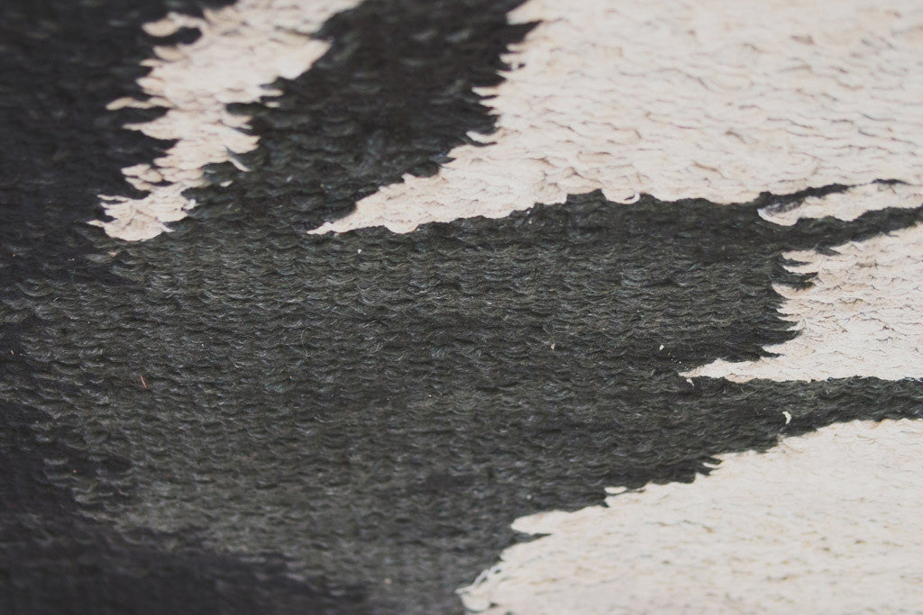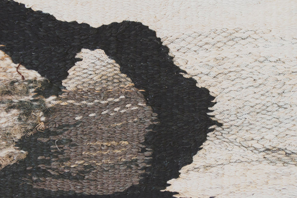 This Mid Century handwoven wool tapestry is a rare find. It's a beautiful cream, black and grey design. It's in good shape with some age related wear. Please see pictures for detailed condition.
