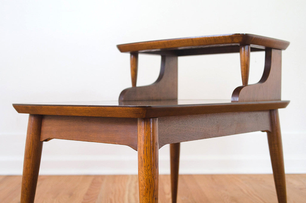 walnut, with a solid surface top. Perfect for casual homes that don't