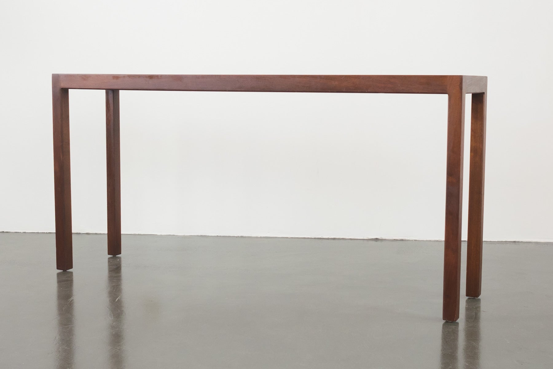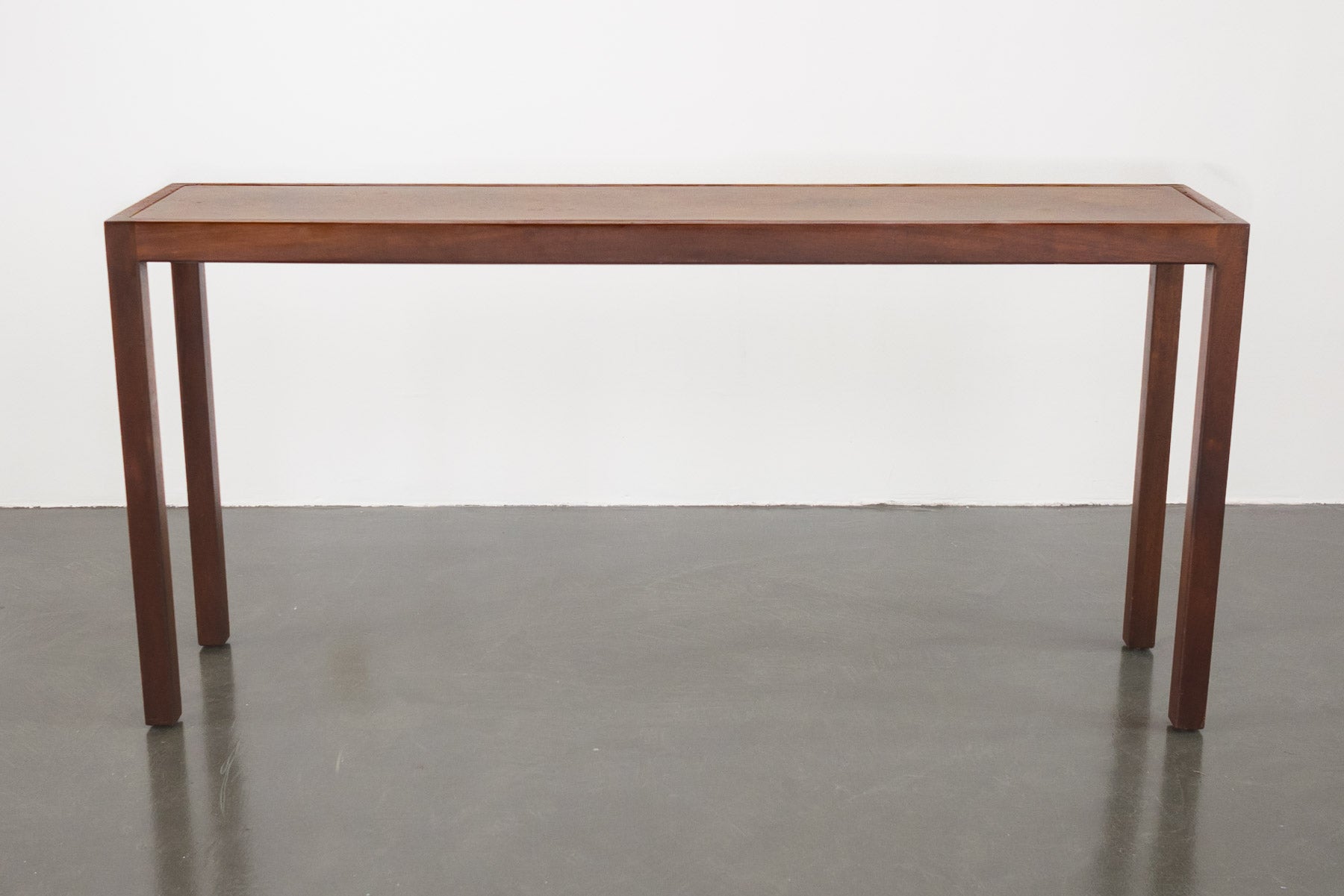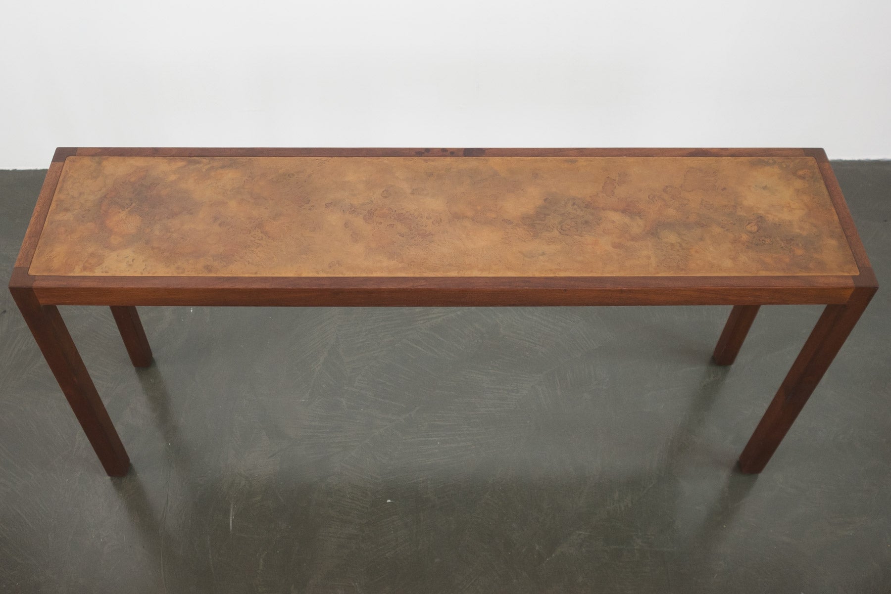 style: modern, sofa, entry, table, console, plant stand material: wood (walnut), acid etched bronze designer: Harry Lunstead age: vintage, Mid Century condition: good, age related wear - see pictures