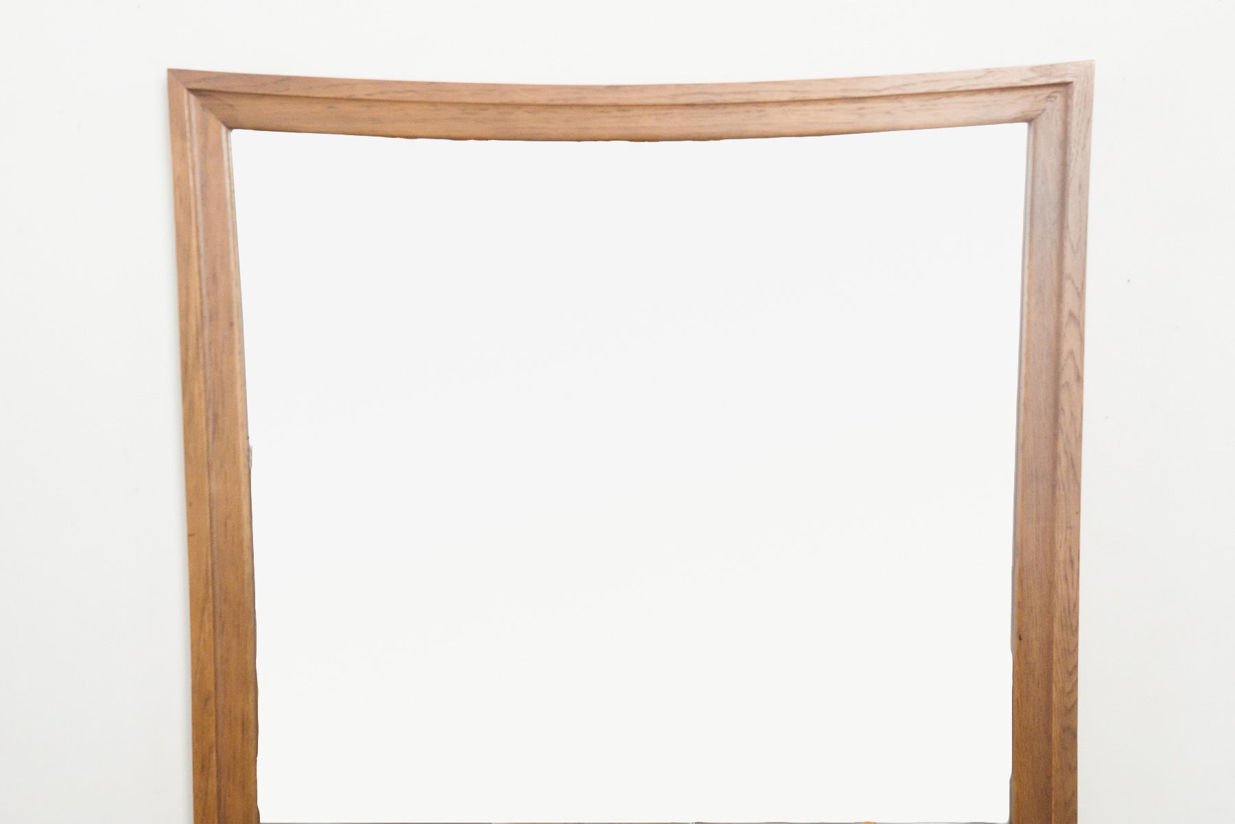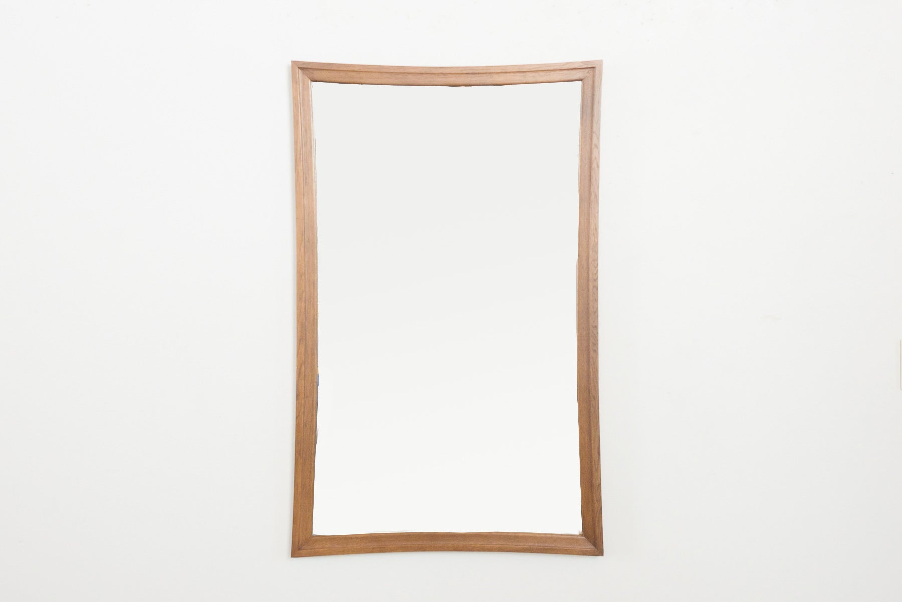 style: modern, curved, vertical, wall mount, mirrormaterial: wood (walnut), glass age: vintage, Mid Centurycondition: good, age related wear - see pictures