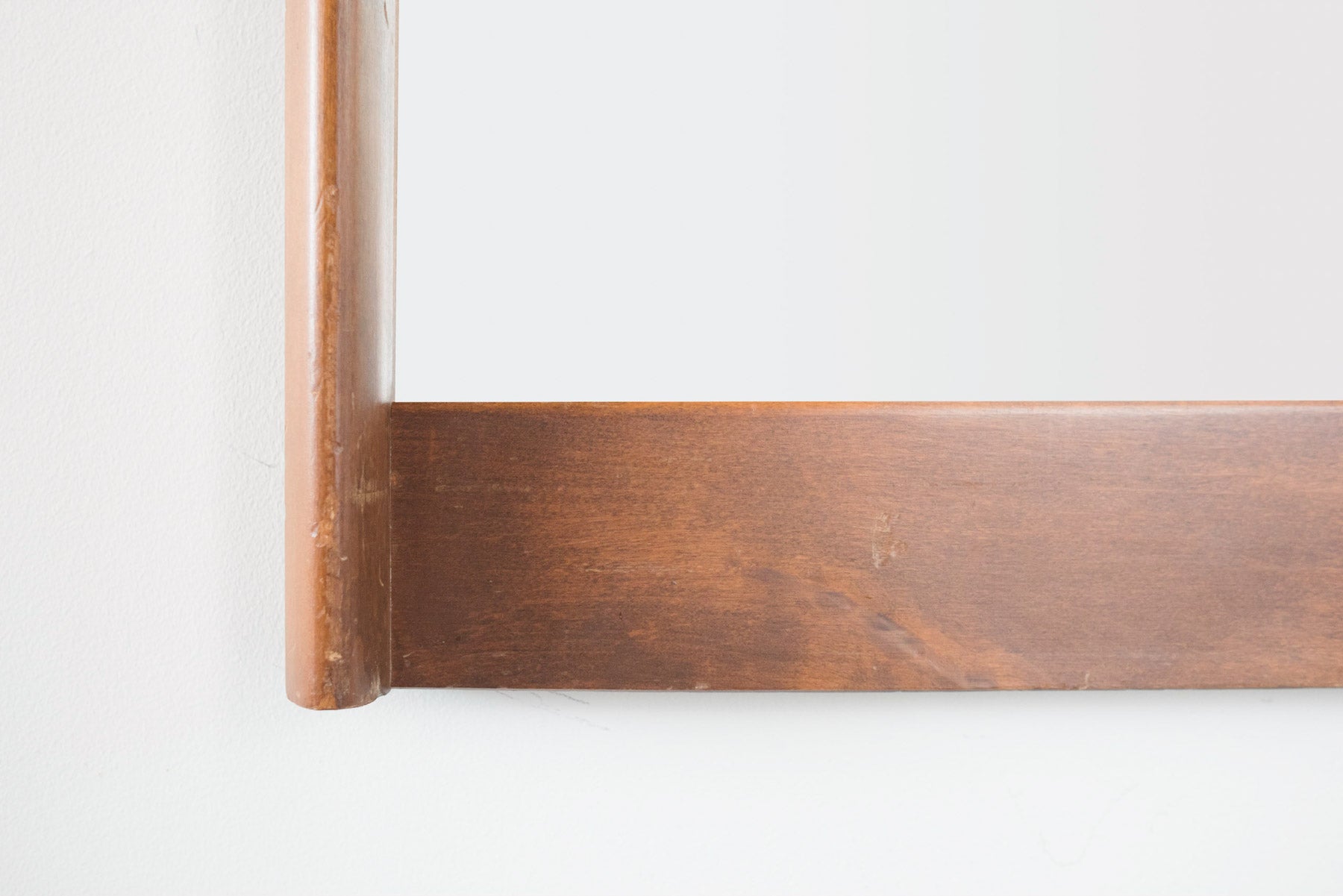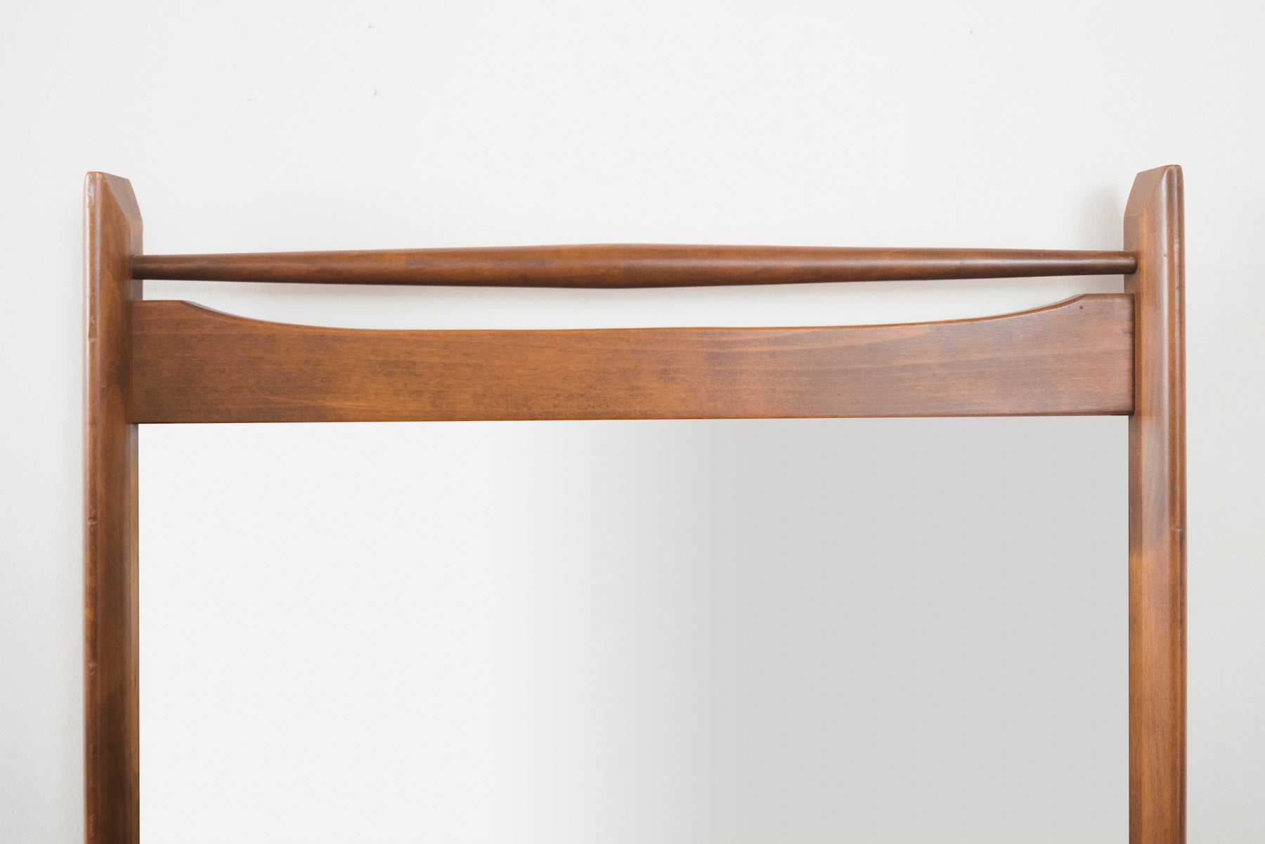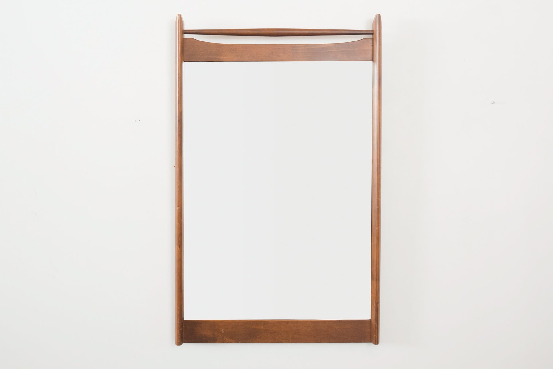 style: modern, minimalist, vertical, wall mount, mirrormaterial: carved wood (walnut), glass age: vintage, Mid Centurycondition: good, age related wear, small chip - see pictures