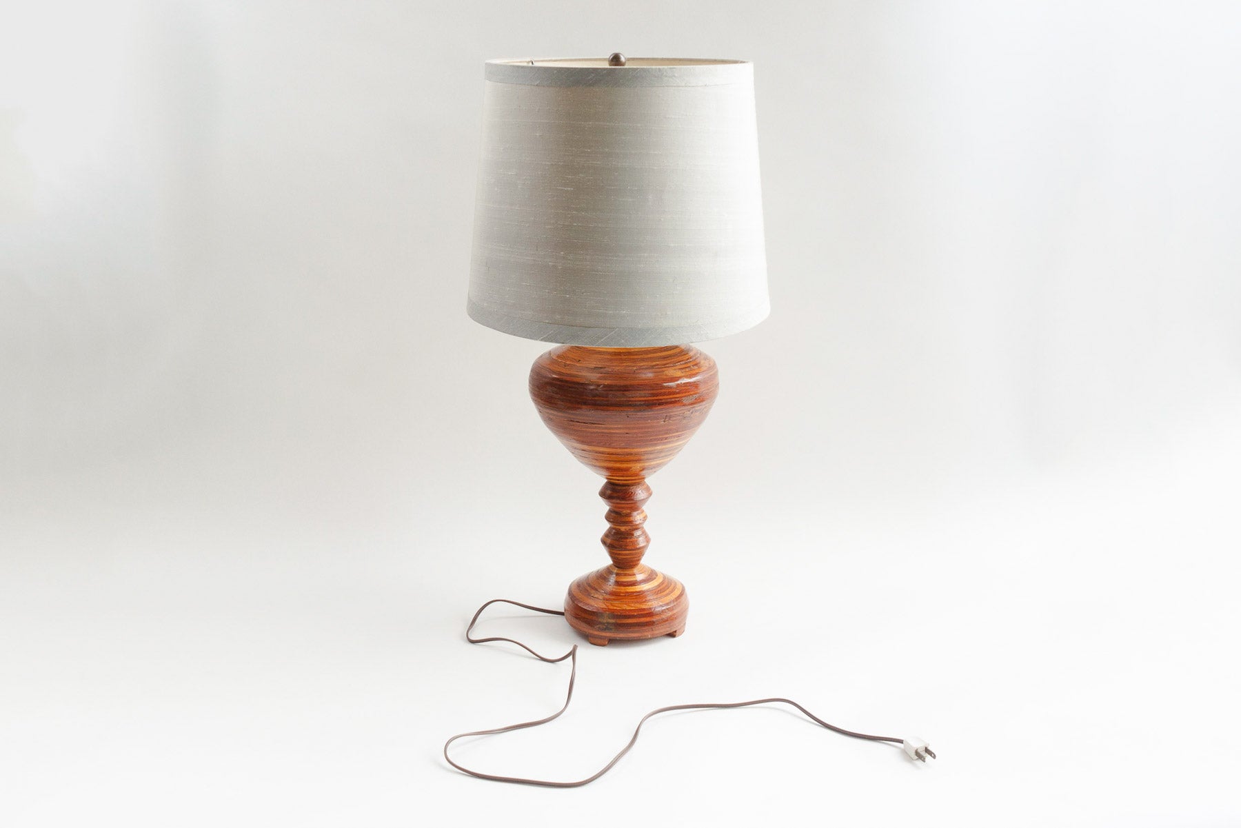 style: modern, turned, desk, table, lampmaterial: wood, cotton, paper, steelage: vintagecondition: good, age related wear - see pictures