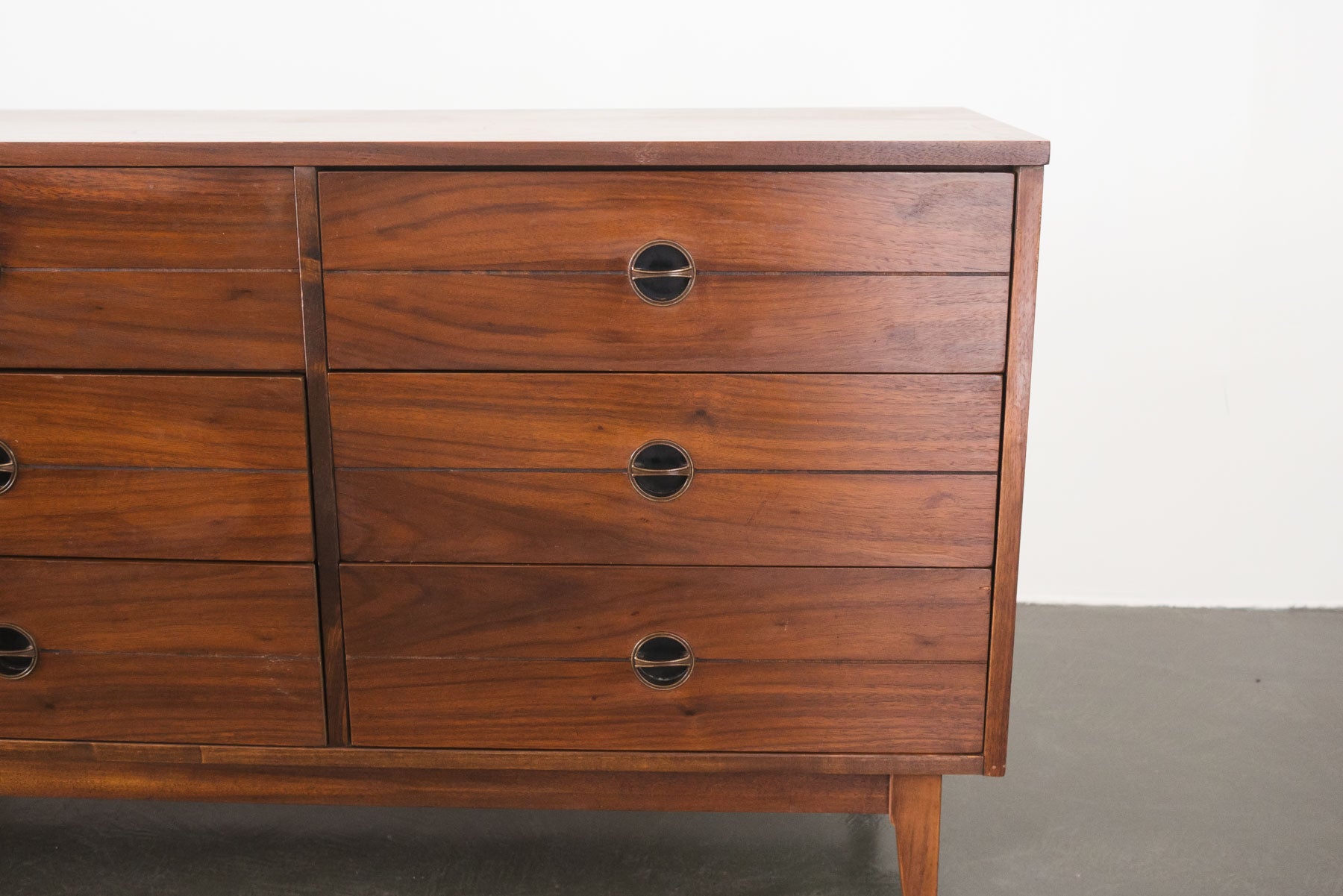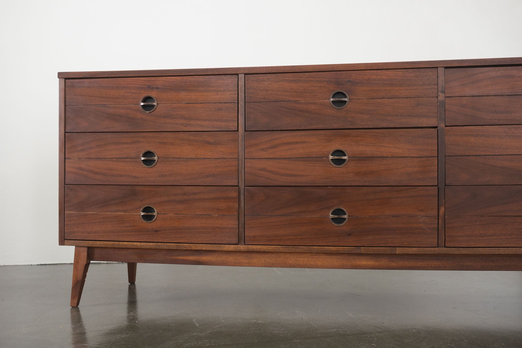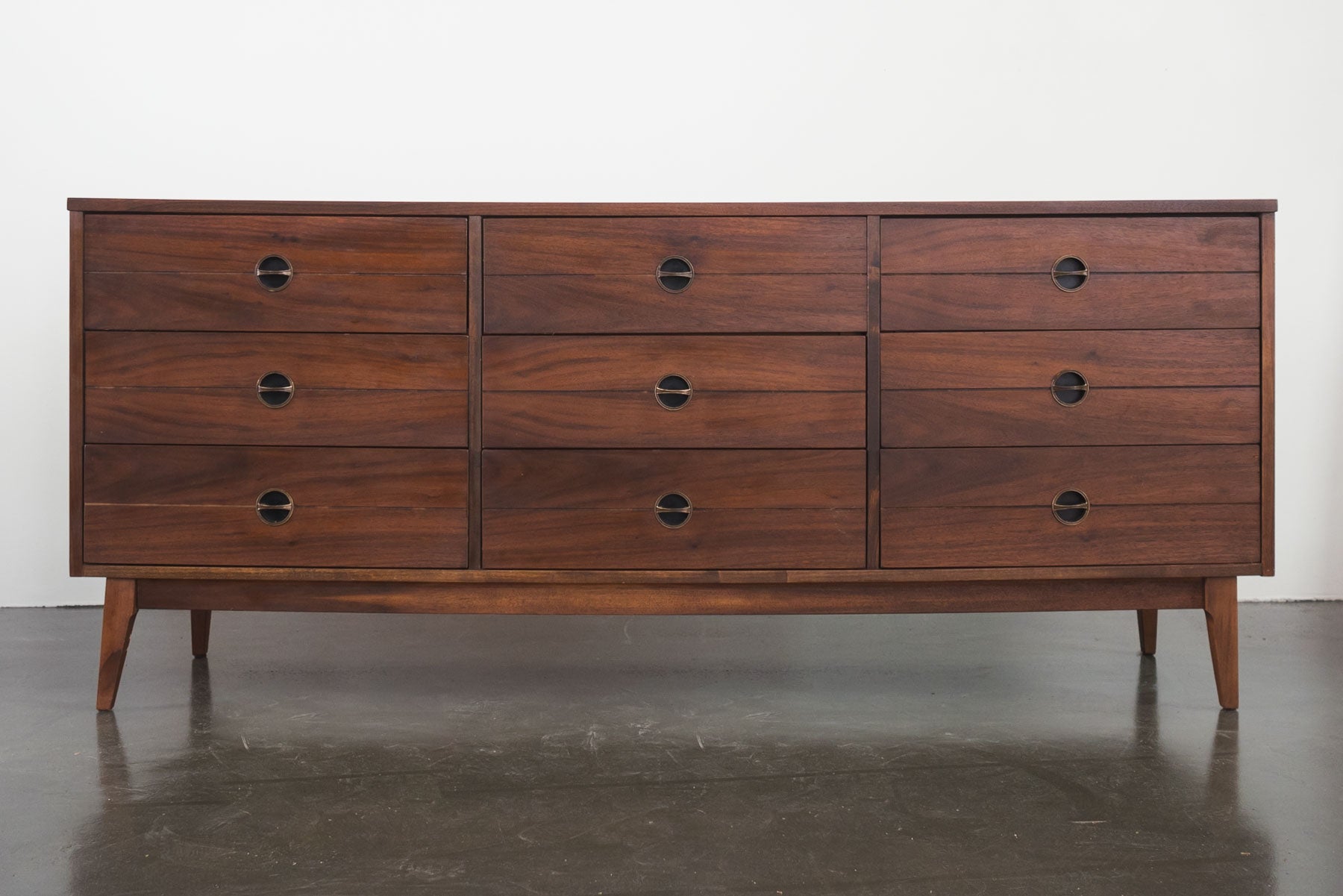 style: modern, nine drawer dresser, credenza, console, tv stand material: wood (walnut) age: vintage, Mid Century condition: good, age related wear - see pictures