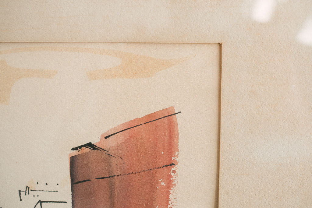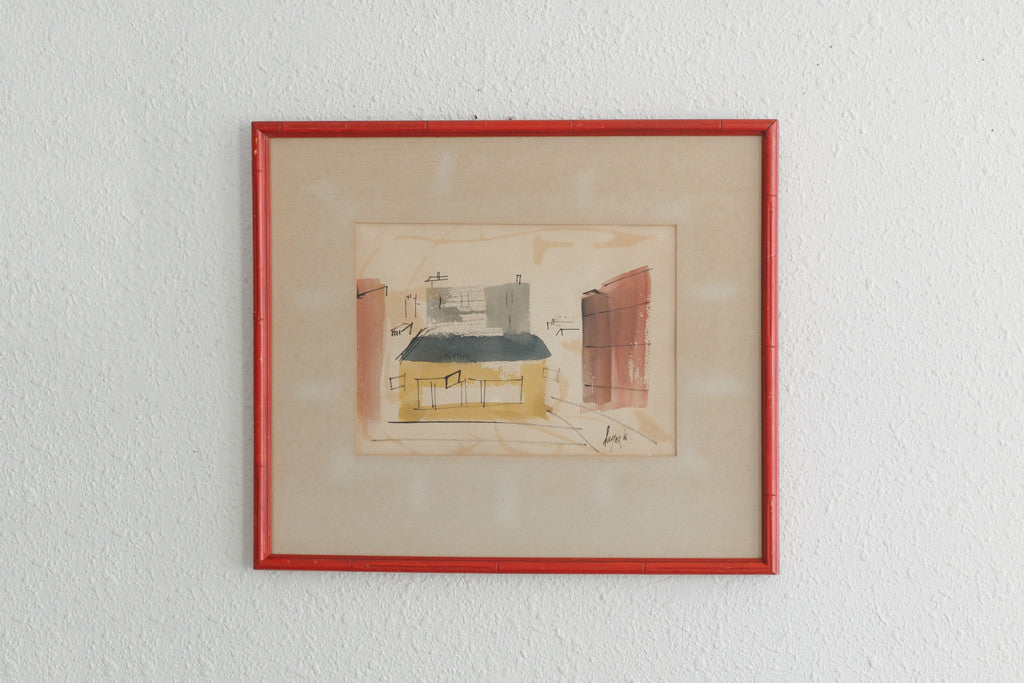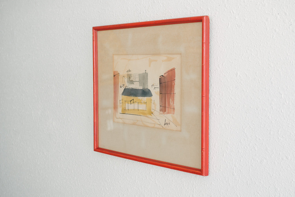 style: original, abstract, houses, watercolor, sketchmaterial: wood, paper, glassartist: "Payne '66" (or similar)age: vintagecondition: good, age related wear - see pictures