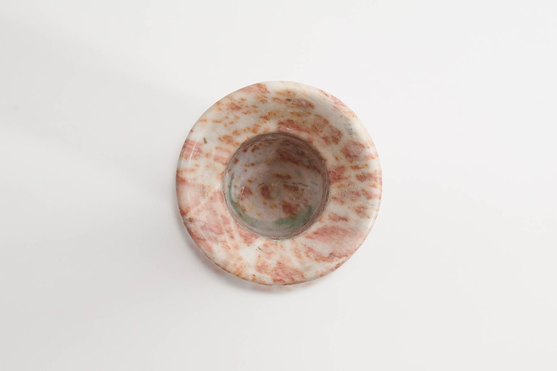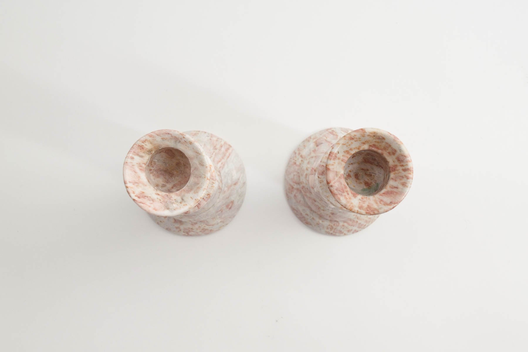 style: pair, carved, stone, candle holdermaterial: marbleage: vintage condition: good, age related wear - see picturesother: sold as a pair3" diameter x 8" high