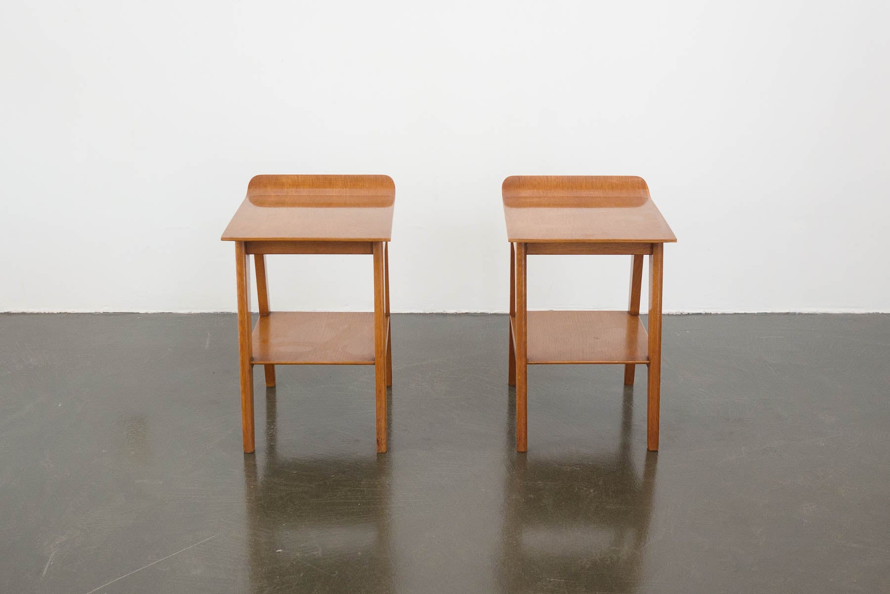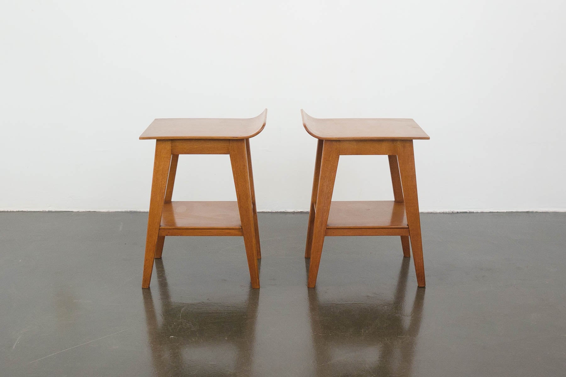 style: pair, petite, side or end tables, nightstand material: wood, teak age: vintage, Mid Century origin: UK, Made in England condition: good, age related wear - see pictures other: priced as a set